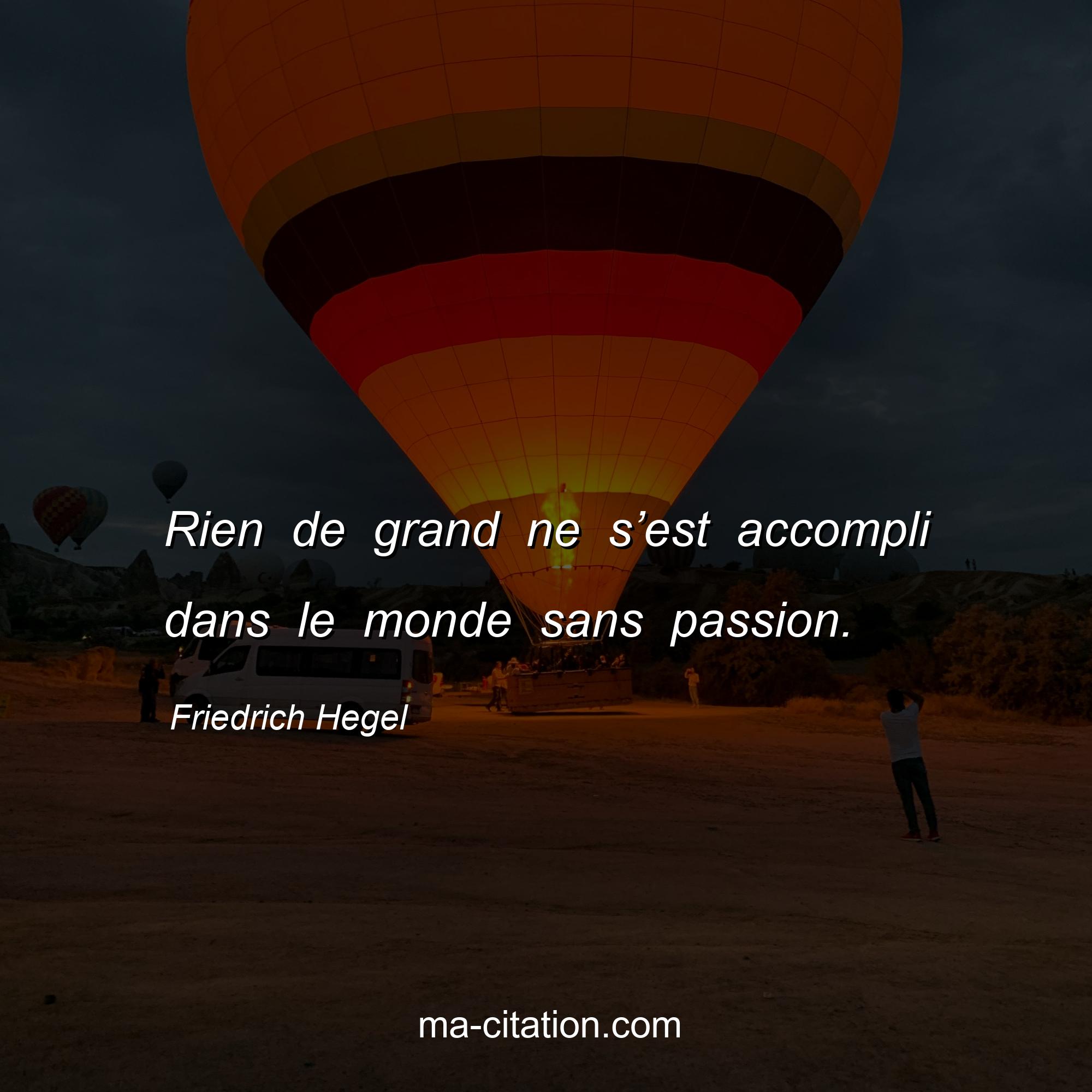 Citation sur la vie de Friedrich Hegel :Rien de grand ne s’est accompli dans le monde sans passion.