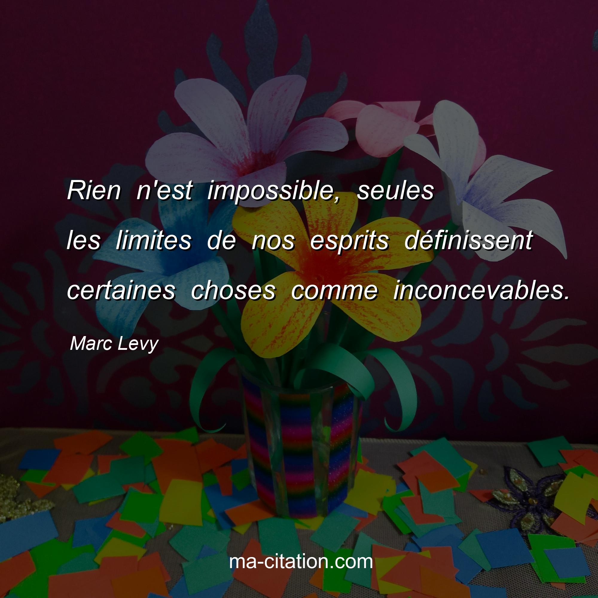 Citation sur la vie de Marc Levy :Rien n'est impossible, seules les limites de nos esprits définissent certaines choses comme inconcevables.