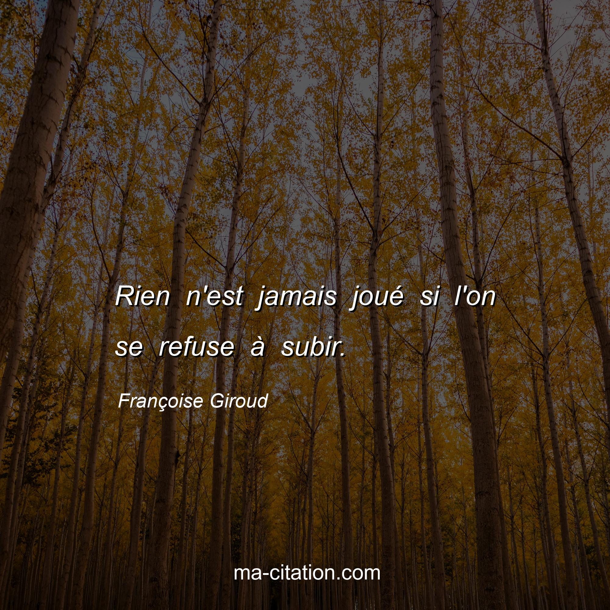 Citation sur la vie de Françoise Giroud :Rien n'est jamais joué si l'on se refuse à subir.