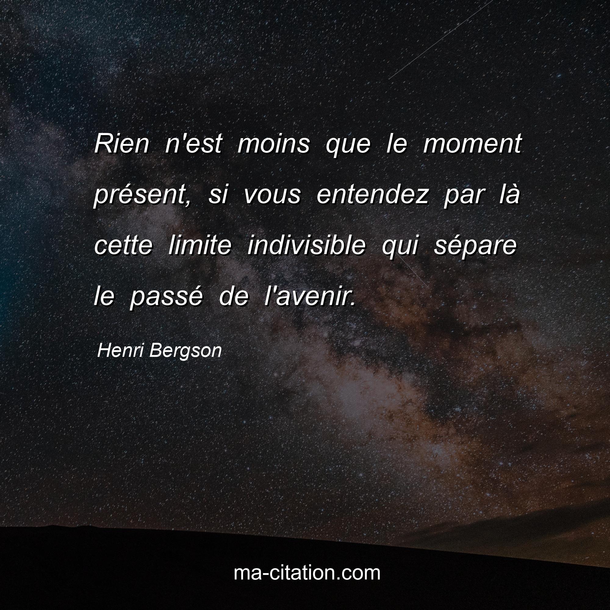 Citation sur la vie de Henri Bergson :Rien n'est moins que le moment présent, si vous entendez par là cette limite indivisible qui sépare le passé de l'avenir.