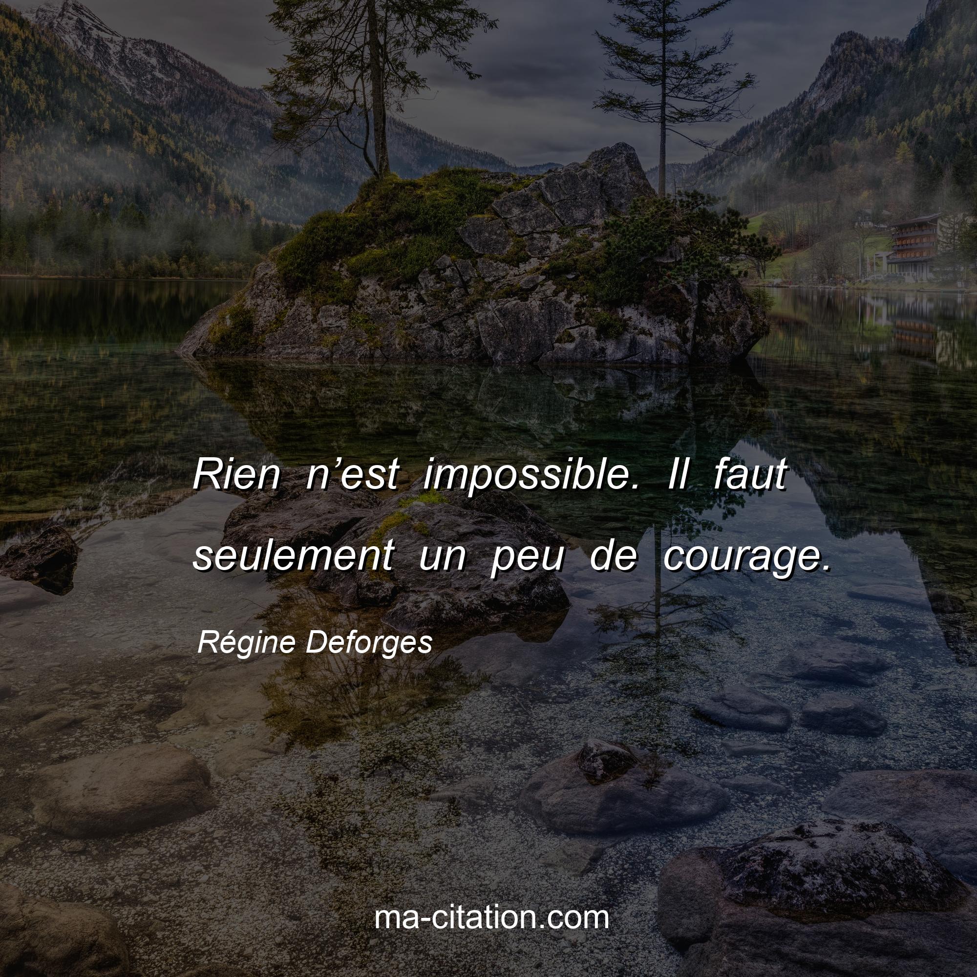 Régine Deforges est l'auteur de la citation sur la vie "Rien n’est impossible. Il faut seulement un peu de courage.".