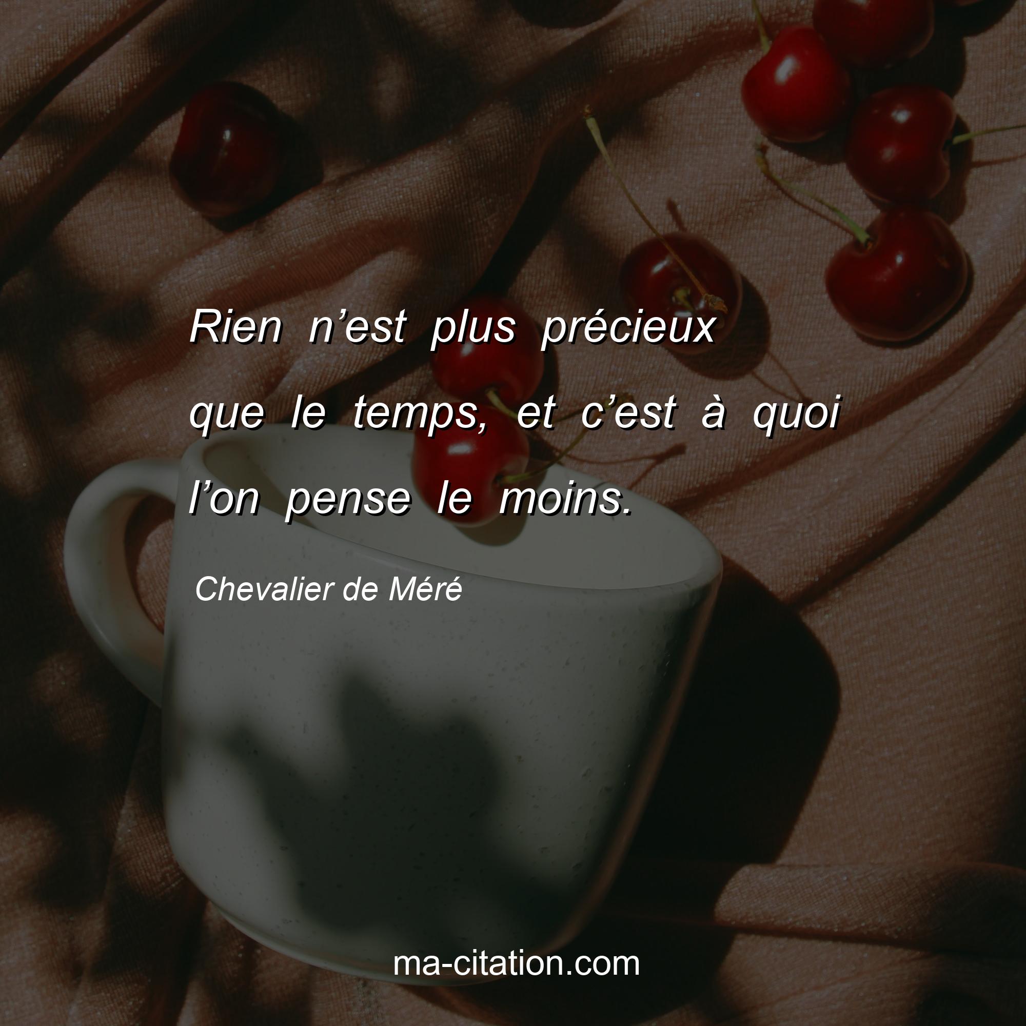 Chevalier de Méré est l'auteur de la citation sur la vie "Rien n’est plus précieux que le temps, et c’est à quoi l’on pense le moins.".