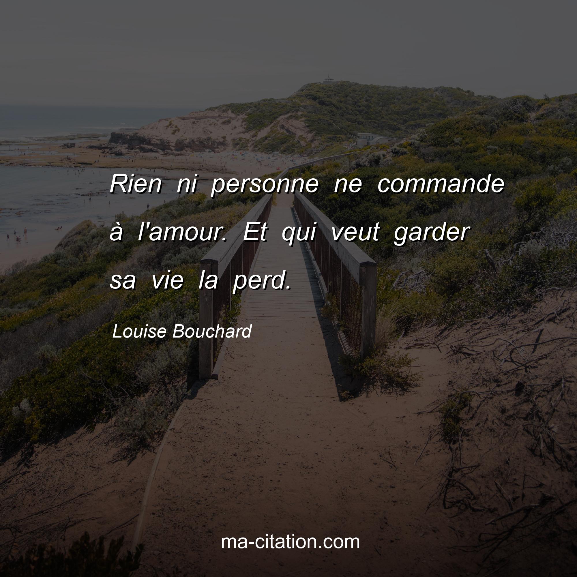 Louise Bouchard est l'auteur de la citation sur la vie "Rien ni personne ne commande à l'amour. Et qui veut garder sa vie la perd.".