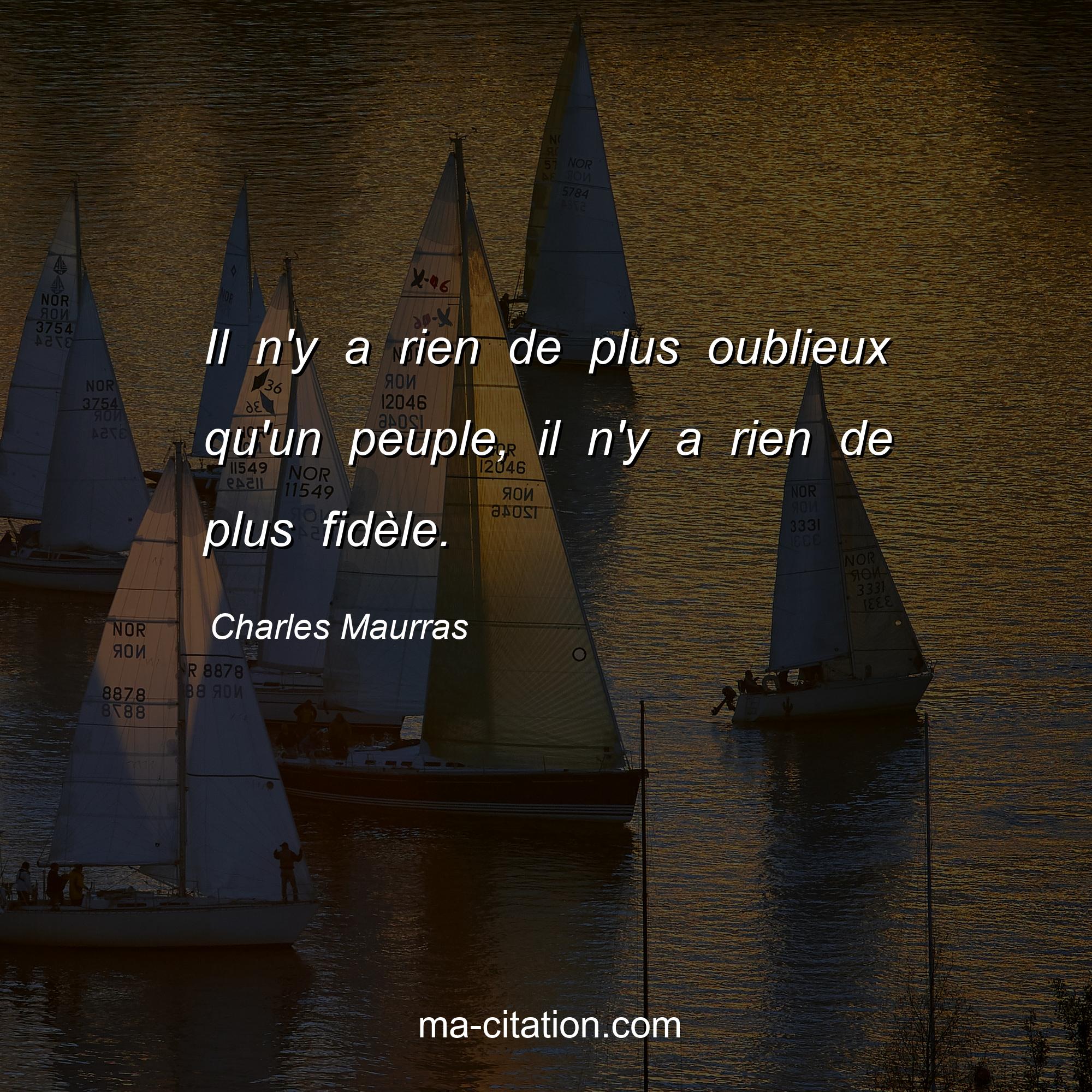 Citation sur la vie de Charles Maurras :Il n'y a rien de plus oublieux qu'un peuple, il n'y a rien de plus fidèle.