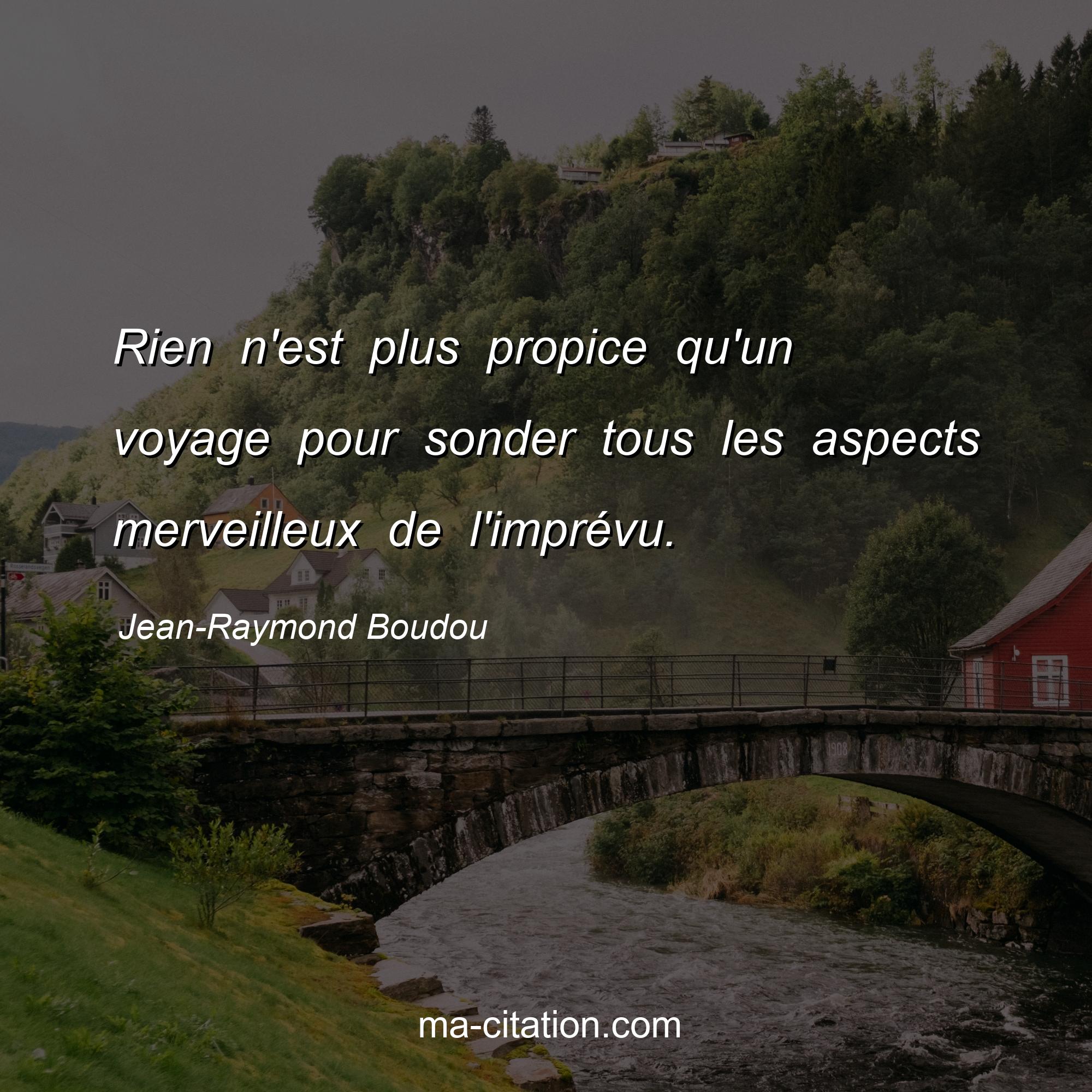 Jean-Raymond Boudou est l'auteur de la citation sur la vie "Rien n'est plus propice qu'un voyage pour sonder tous les aspects merveilleux de l'imprévu.".