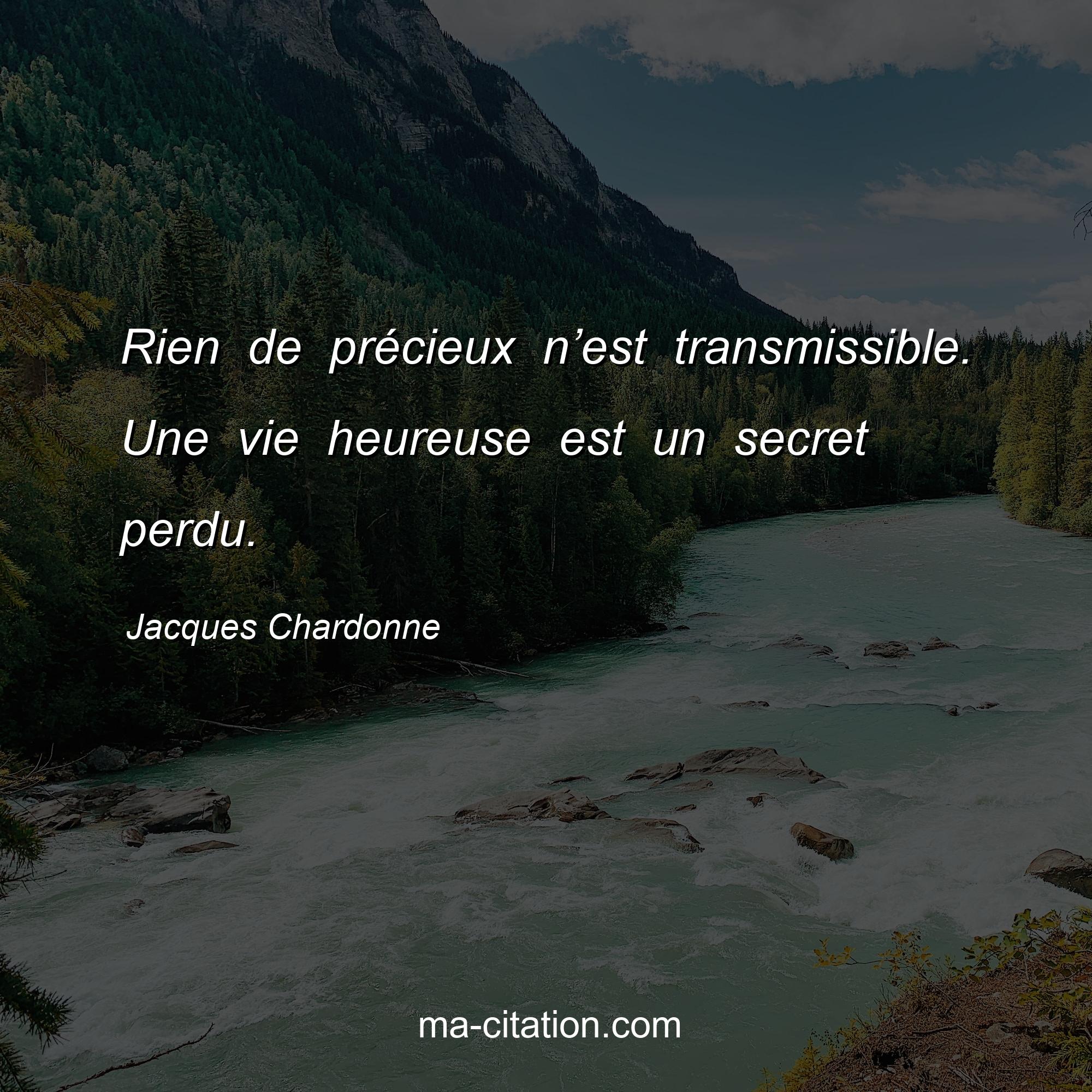 Citation sur la vie de Jacques Chardonne :Rien de précieux n’est transmissible. Une vie heureuse est un secret perdu.