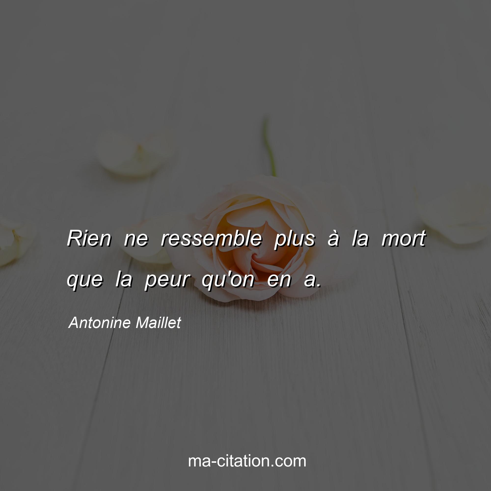 Rien ne ressemble plus à la mort que la peur qu'on en a.