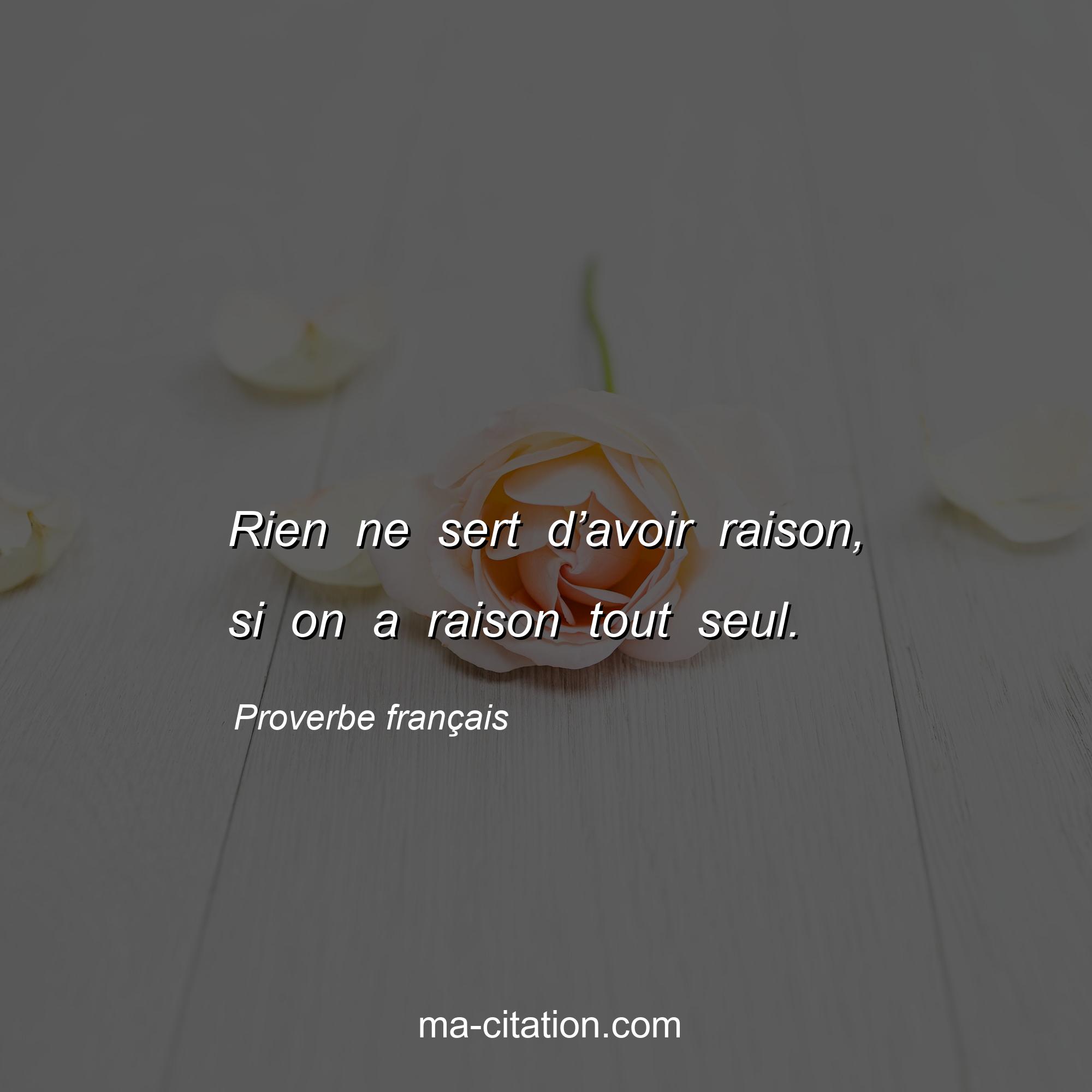 Proverbe français sur la vie :Rien ne sert d’avoir raison, si on a raison tout seul.