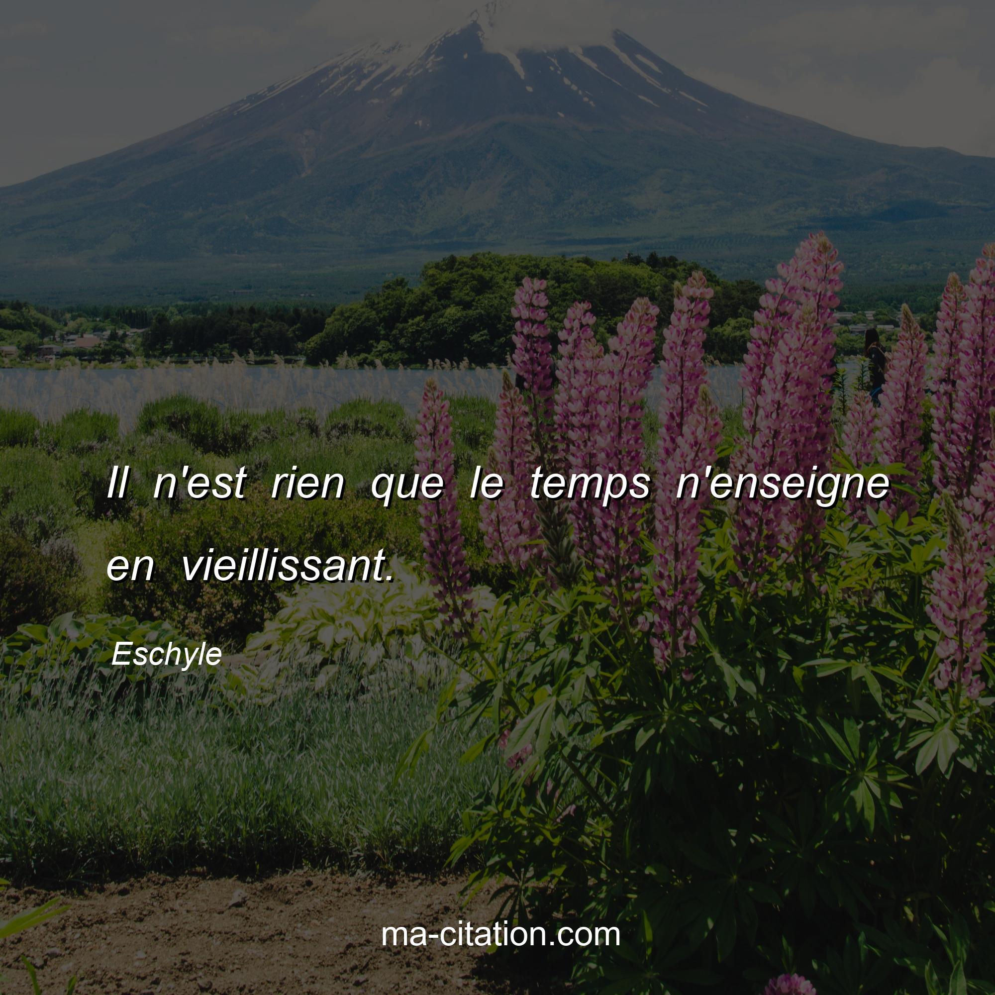 Eschyle est l'auteur de la citation sur la vie "Il n'est rien que le temps n'enseigne en vieillissant.".