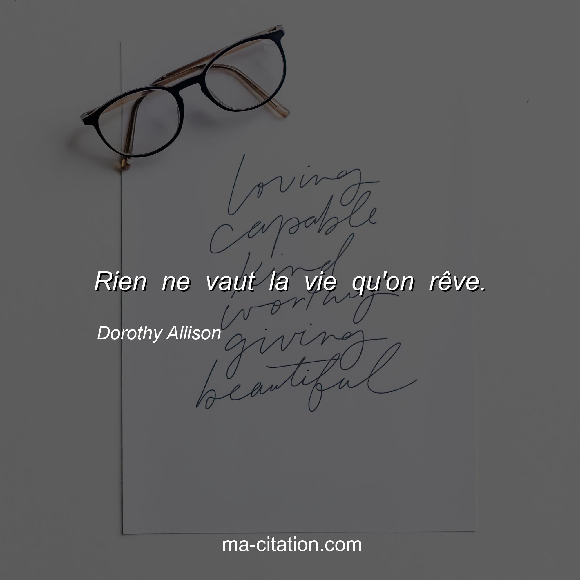 Dorothy Allison est l'auteur de la citation sur la vie "Rien ne vaut la vie qu'on rêve.".