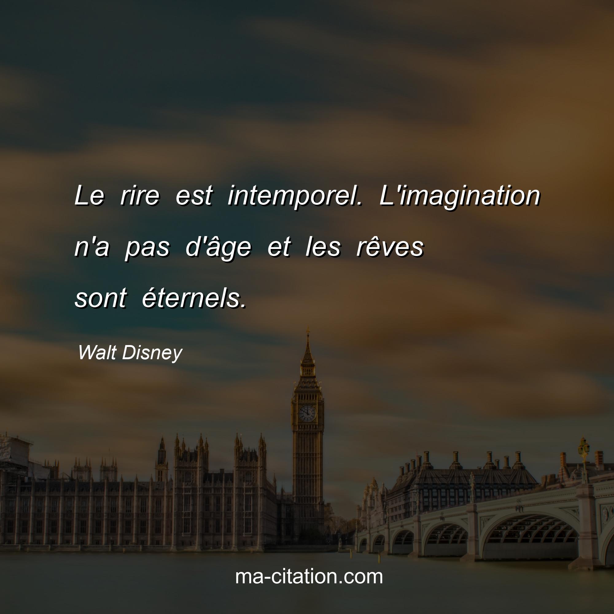 Citation sur la vie de Walt Disney :Le rire est intemporel. L'imagination n'a pas d'âge et les rêves sont éternels.