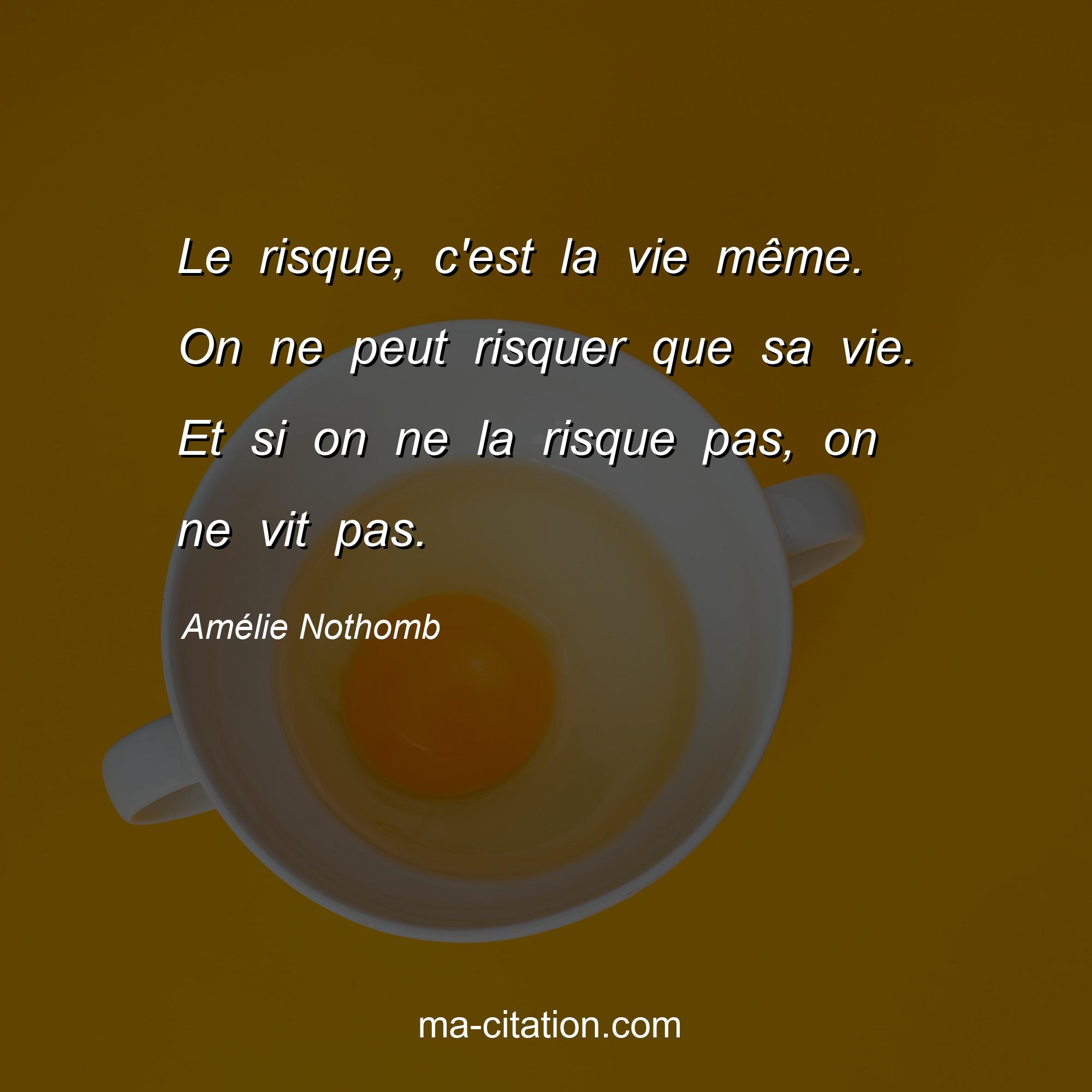 Amélie Nothomb est l'auteur de la citation sur la vie "Le risque, c'est la vie même. On ne peut risquer que sa vie. Et si on ne la risque pas, on ne vit pas.".