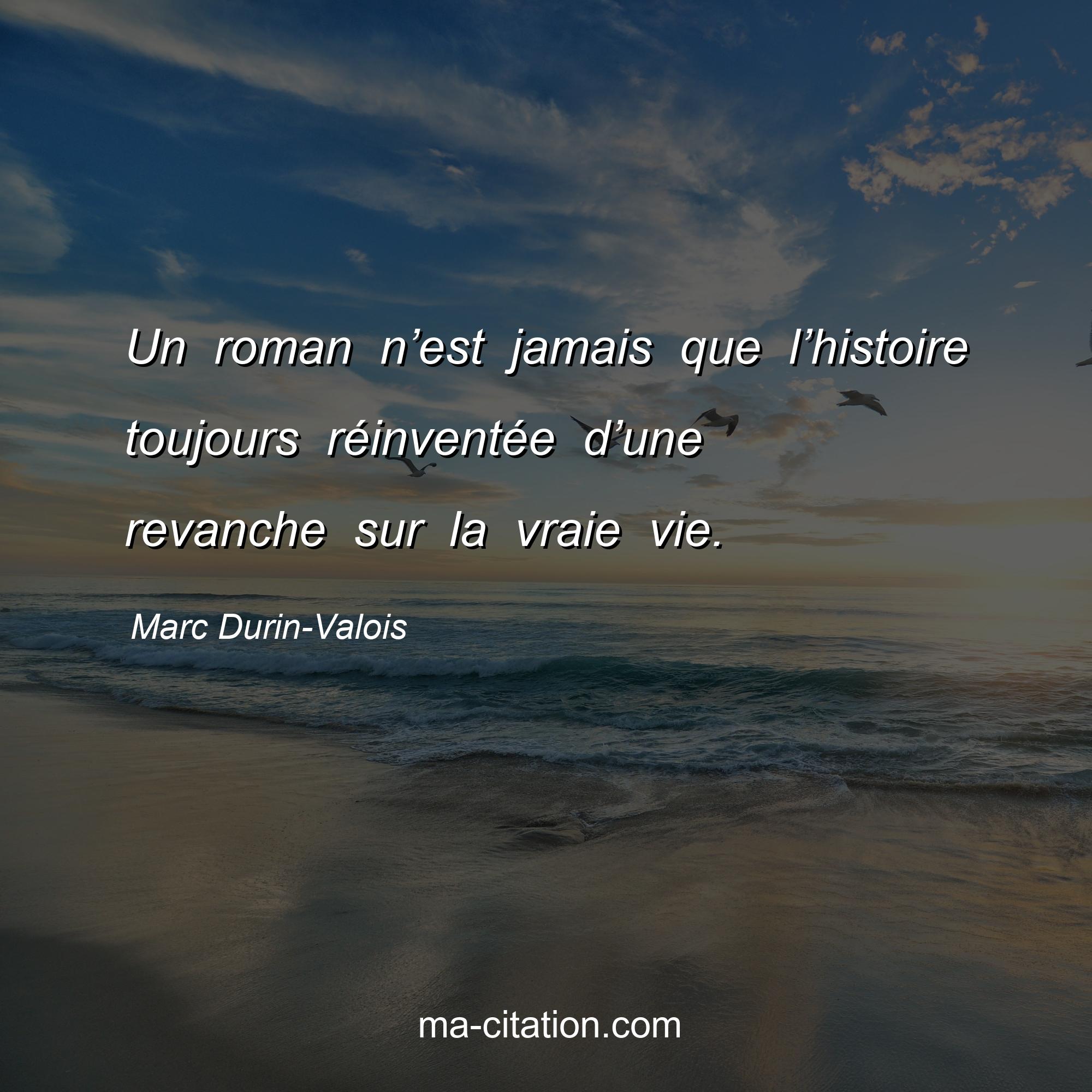 Marc Durin-Valois est l'auteur de la citation sur la vie "Un roman n’est jamais que l’histoire toujours réinventée d’une revanche sur la vraie vie.".