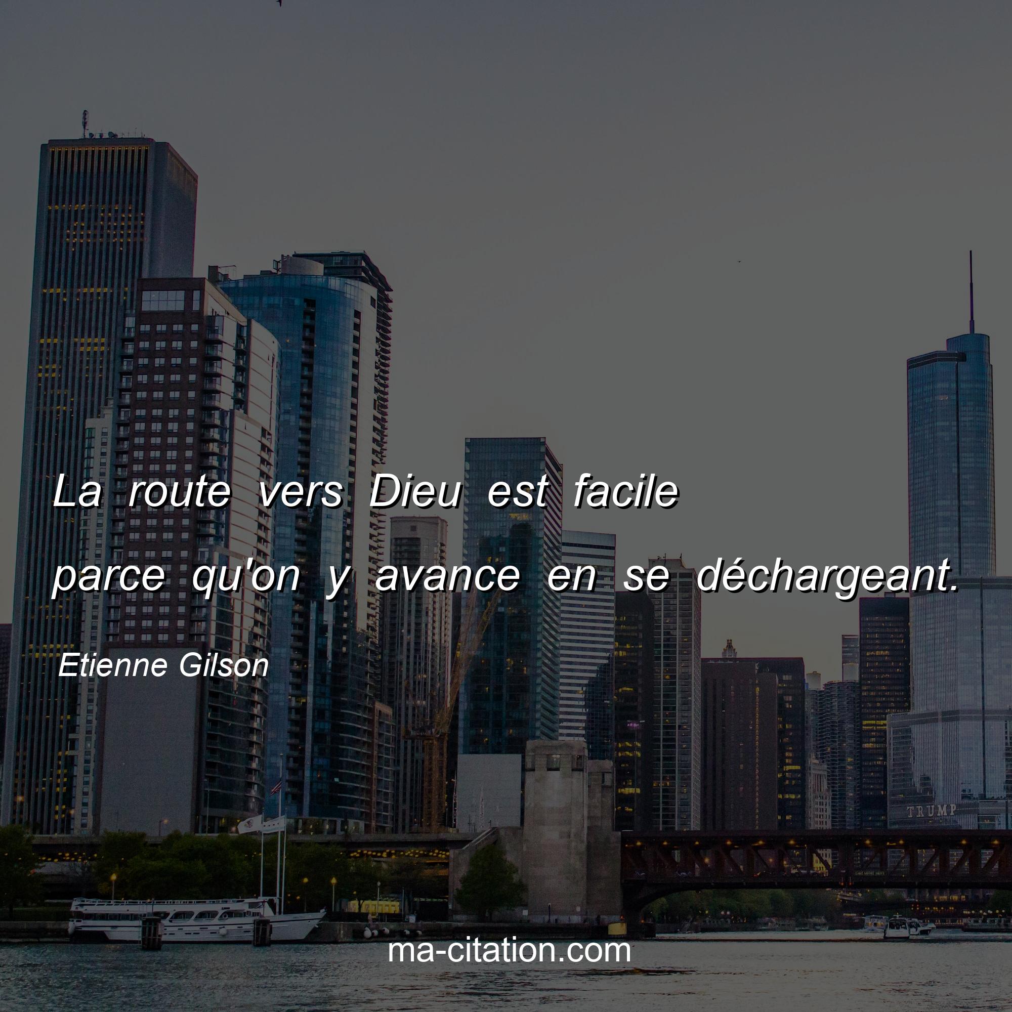 Citation sur la vie d'Etienne Gilson :La route vers Dieu est facile parce qu'on y avance en se déchargeant.