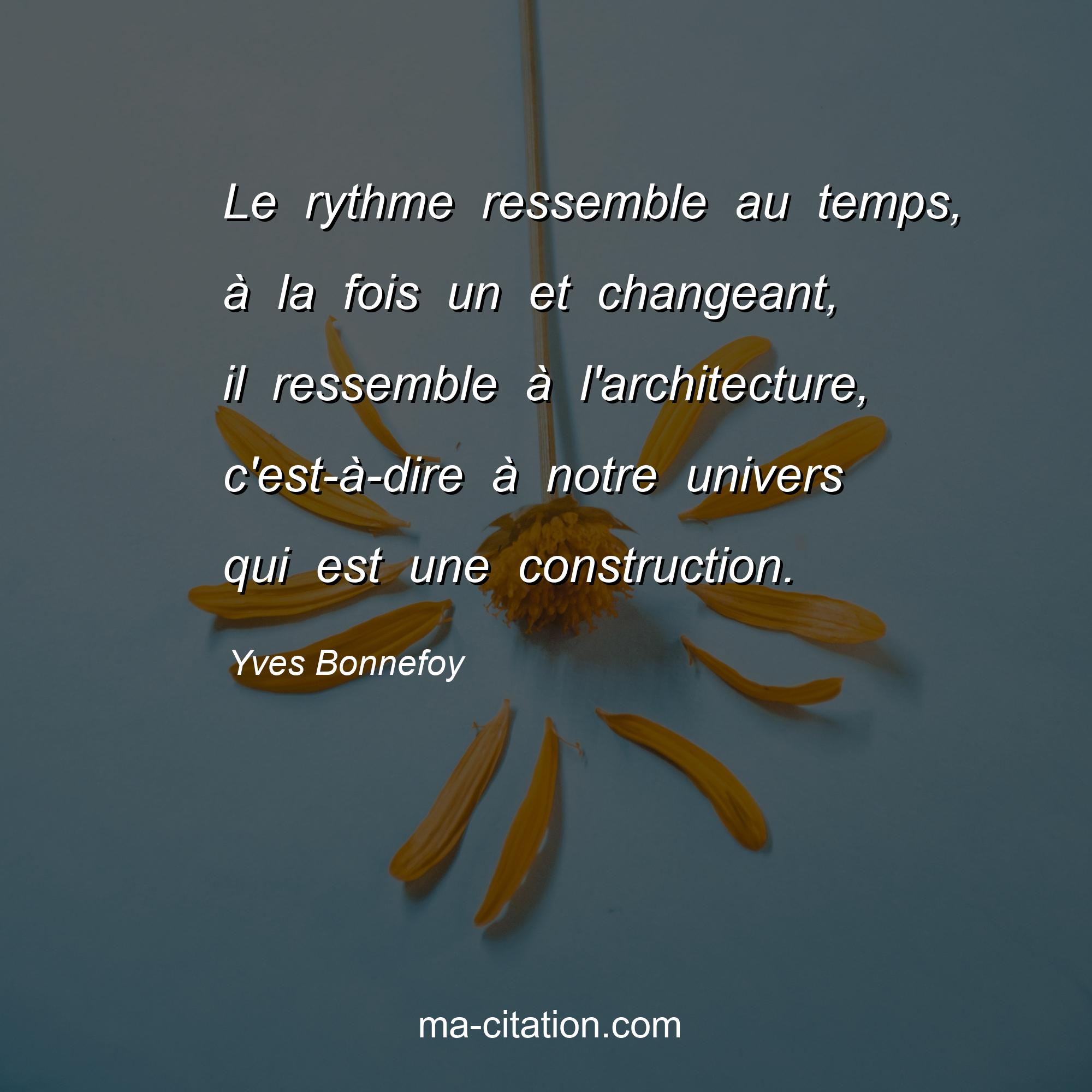 Citation sur la vie de Yves Bonnefoy :Le rythme ressemble au temps, à la fois un et changeant, il ressemble à l'architecture, c'est-à -dire à notre univers qui est une construction.