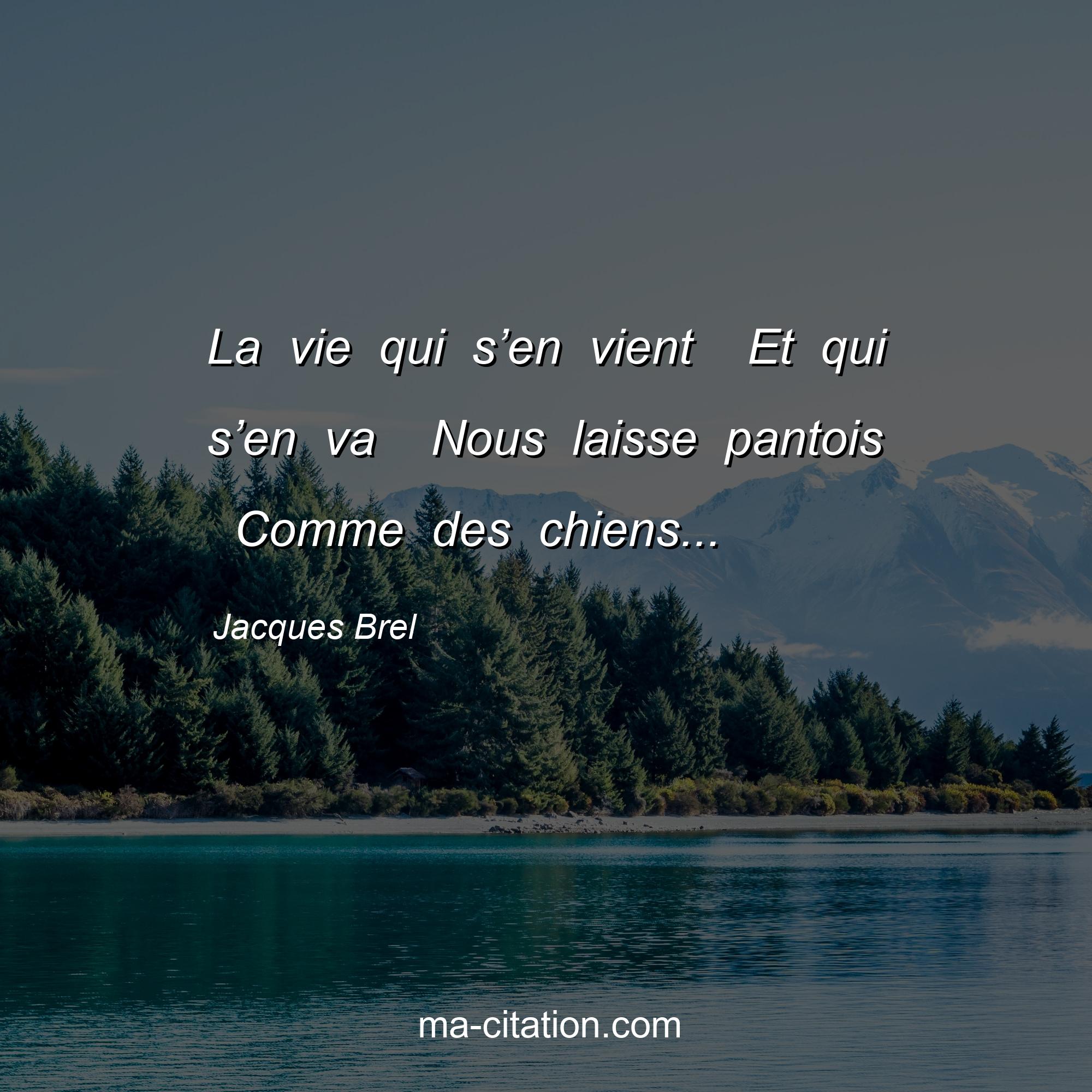Jacques Brel est l'auteur de la citation sur la vie "La vie qui s’en vient Et qui s’en va Nous laisse pantois Comme des chiens...".