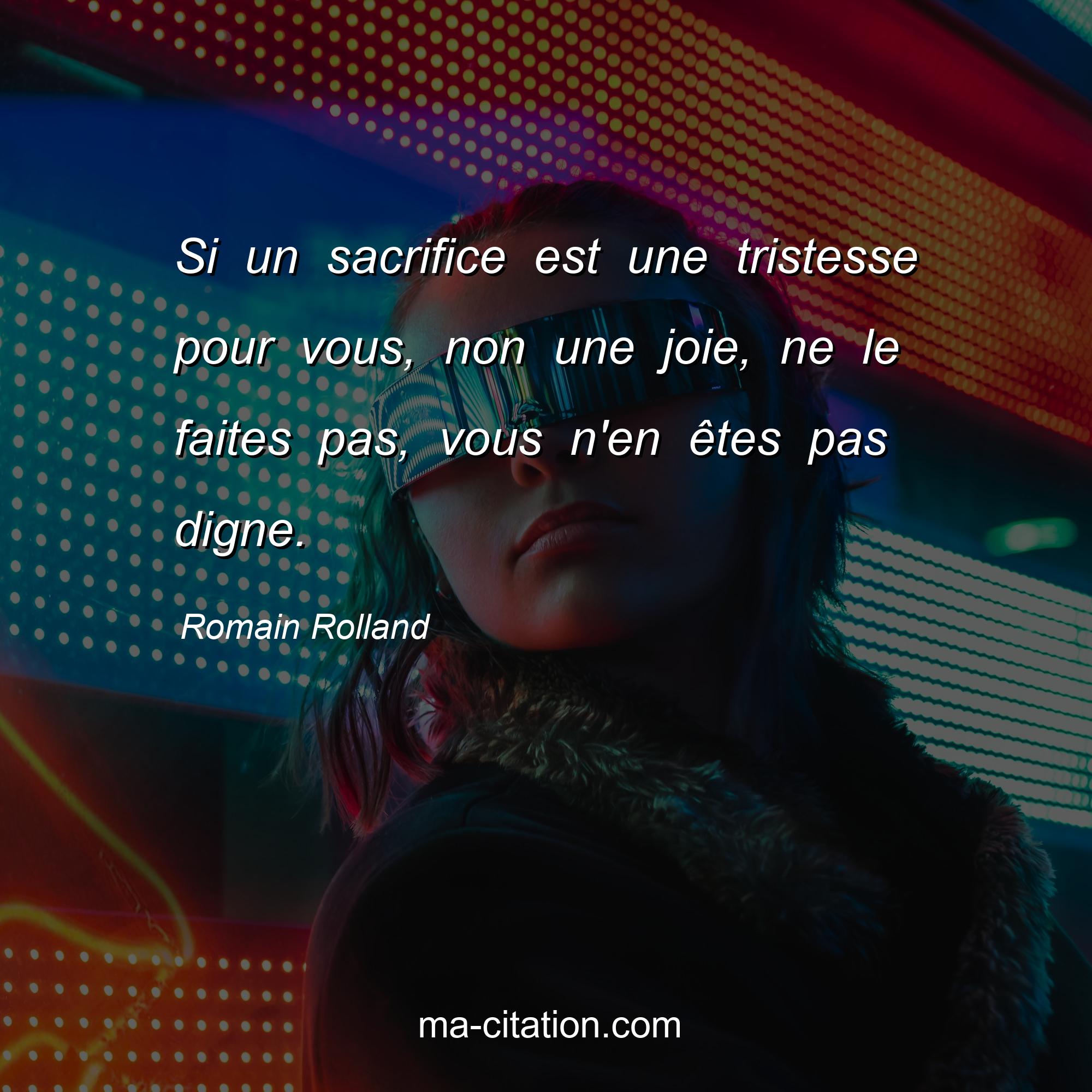 Citation sur la vie de Romain Rolland :Si un sacrifice est une tristesse pour vous, non une joie, ne le faites pas, vous n'en êtes pas digne.