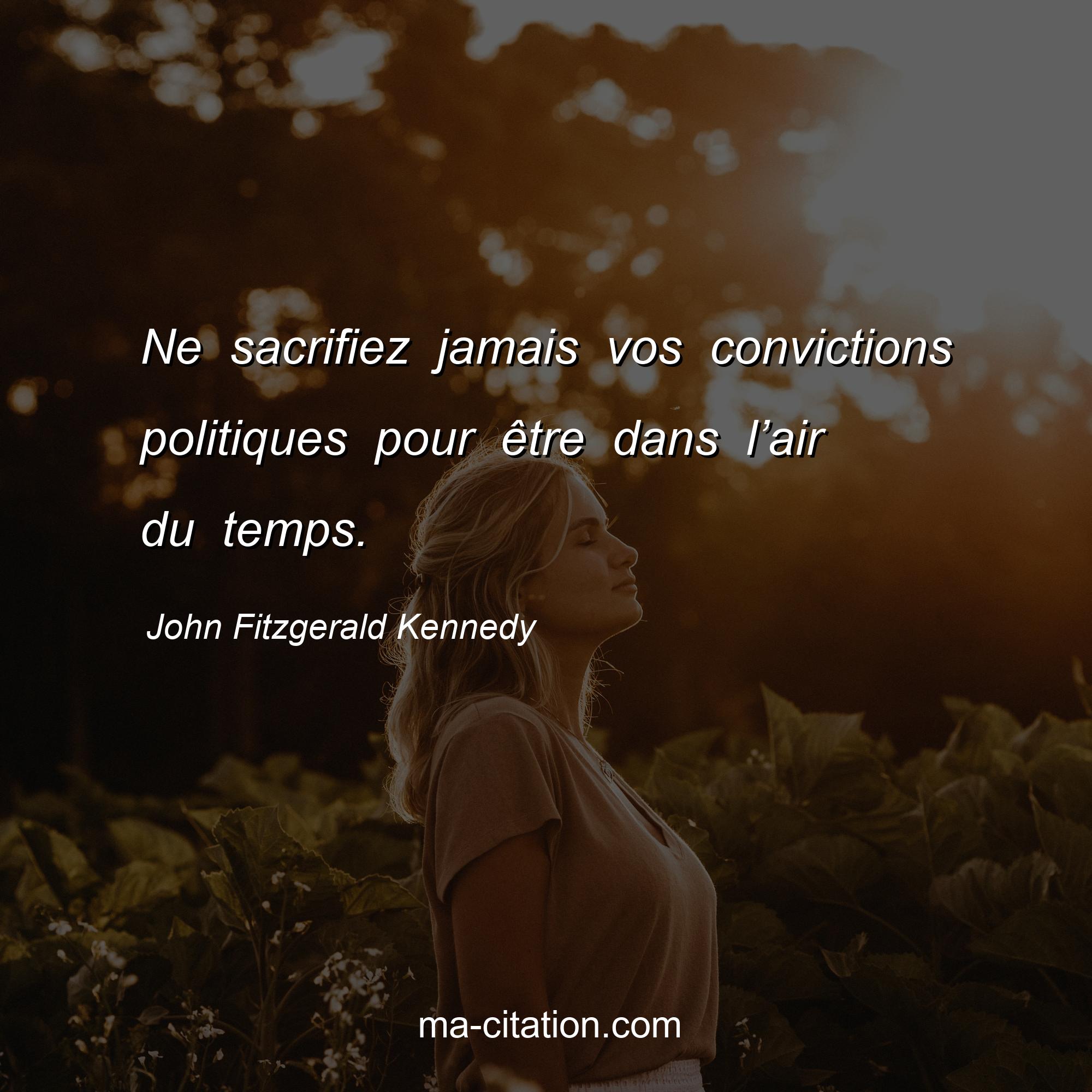 Citation sur la vie de John Fitzgerald Kennedy :Ne sacrifiez jamais vos convictions politiques pour être dans l’air du temps.