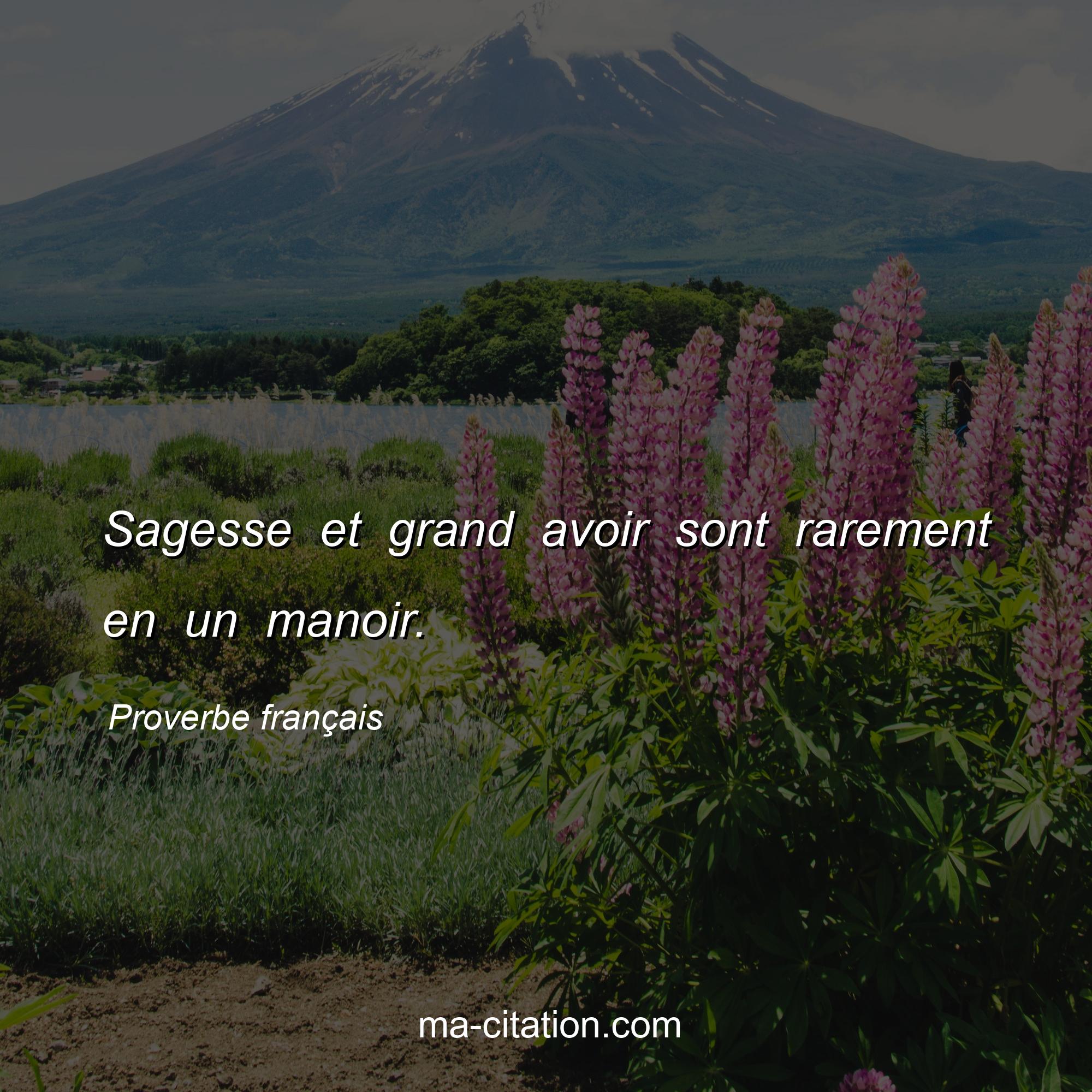 Proverbe français sur la vie :Sagesse et grand avoir sont rarement en un manoir.