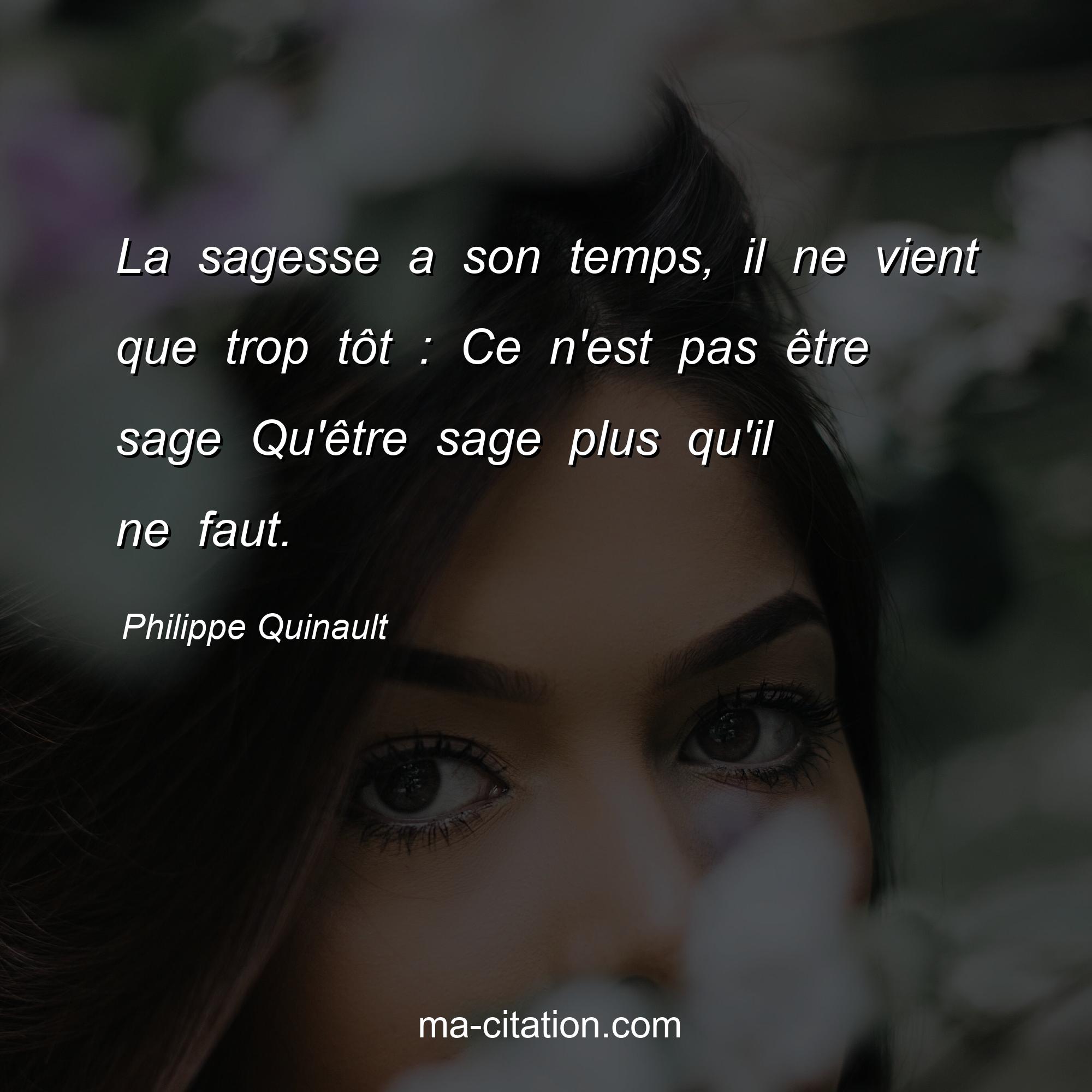 Citation sur la vie de Philippe Quinault :La sagesse a son temps, il ne vient que trop tôt : Ce n'est pas être sage Qu'être sage plus qu'il ne faut.