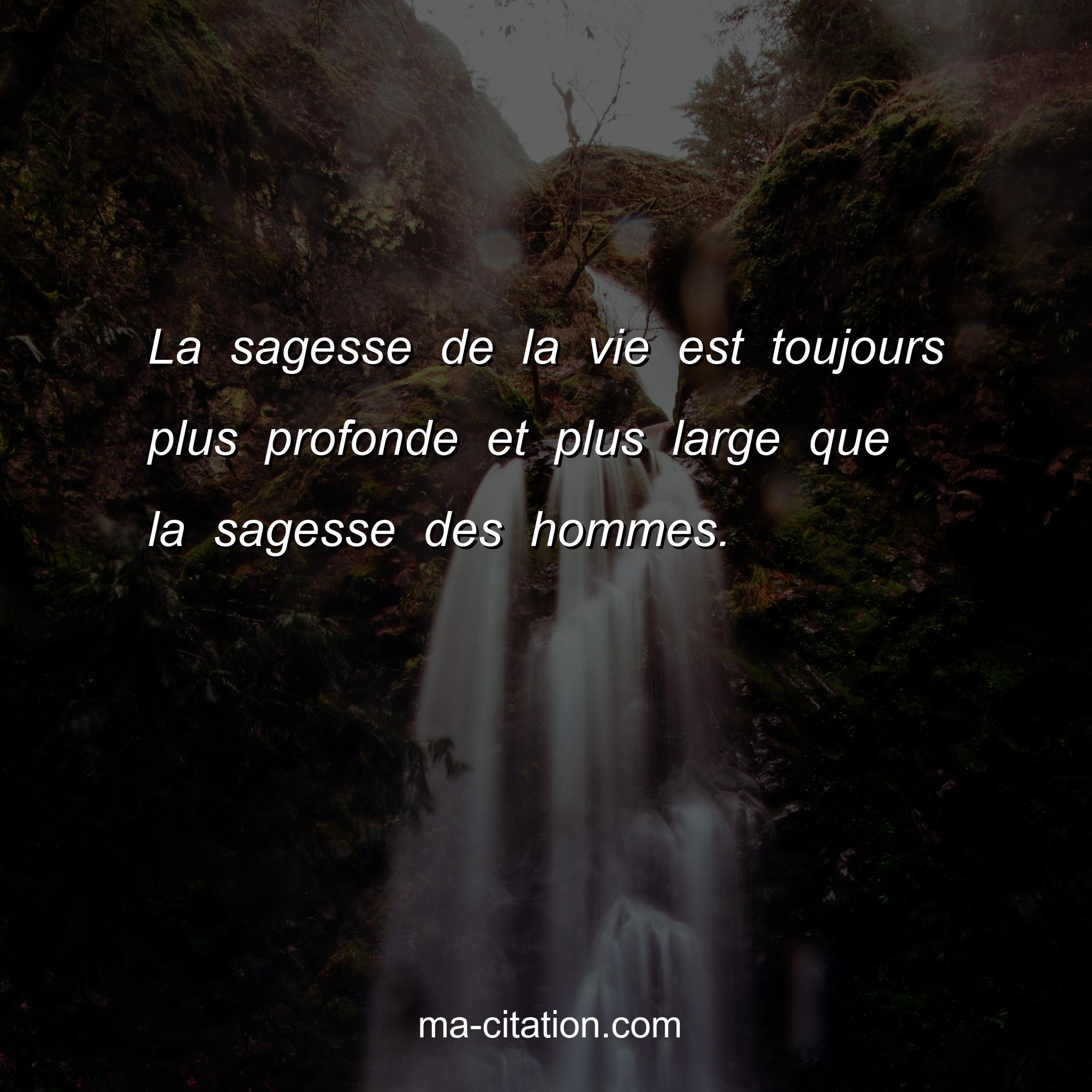 La sagesse de la vie est toujours plus profonde et plus large que la sagesse des hommes.