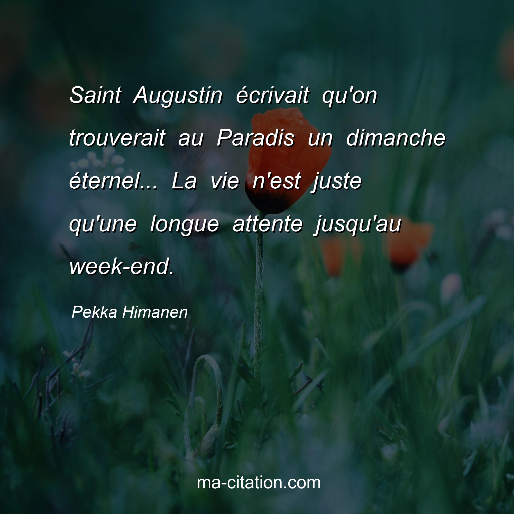 Citation sur la vie de Pekka Himanen :Saint Augustin écrivait qu'on trouverait au Paradis un dimanche éternel... La vie n'est juste qu'une longue attente jusqu'au week-end.