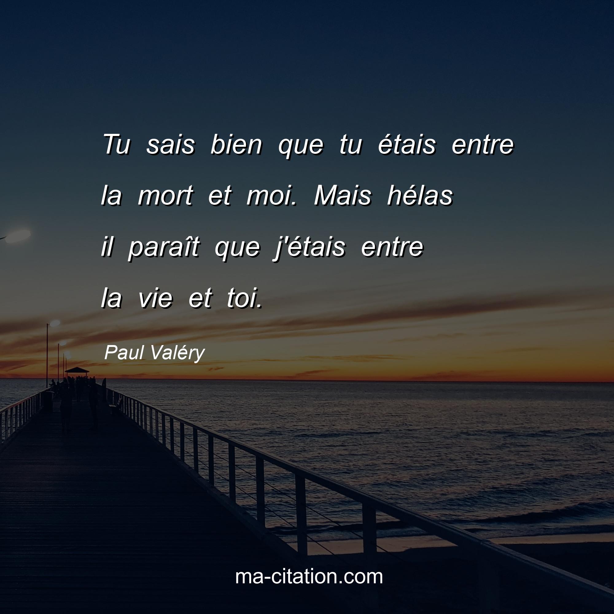 Citation sur la vie de Paul Valéry :Tu sais bien que tu étais entre la mort et moi. Mais hélas il paraît que j'étais entre la vie et toi.