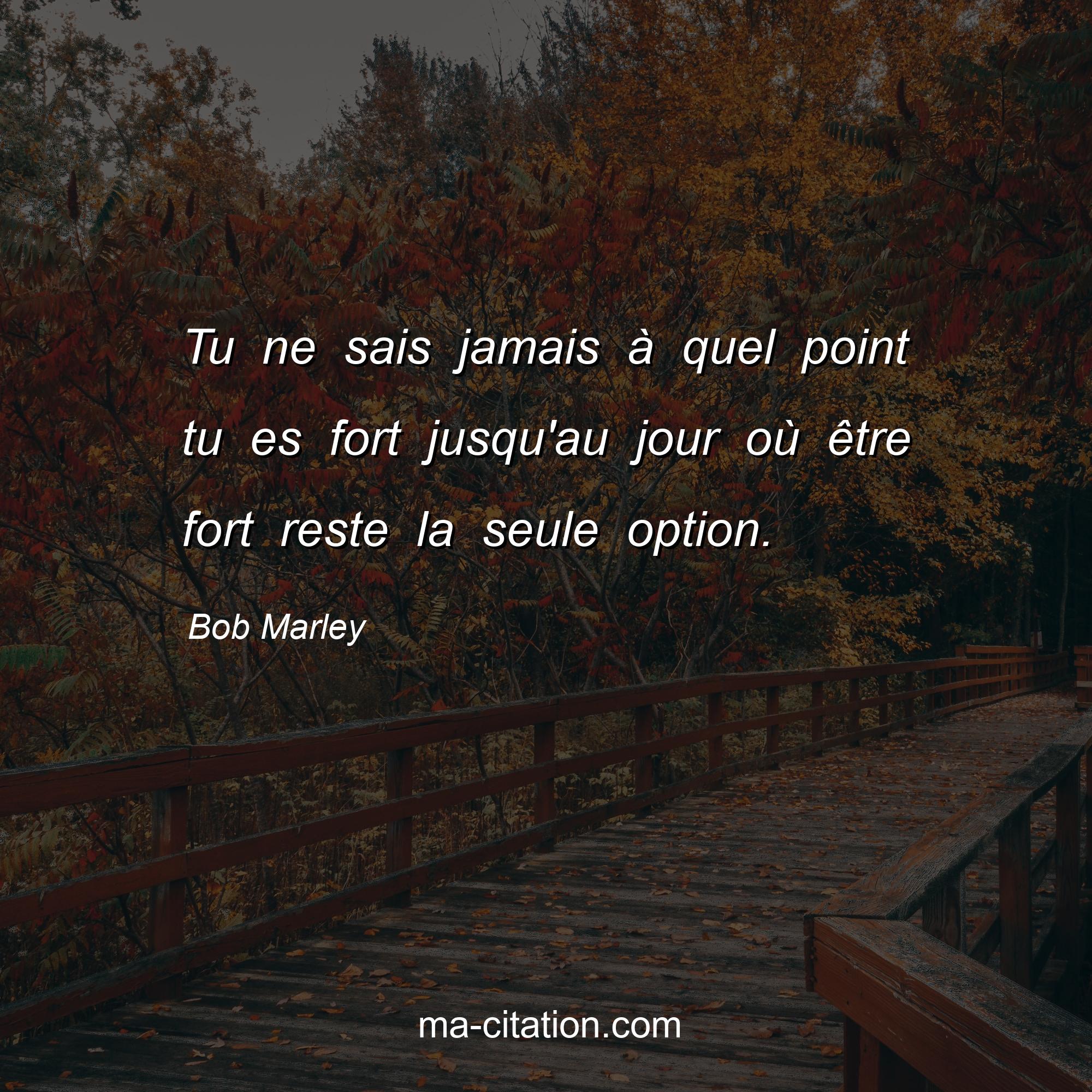 Citation sur la vie de Bob Marley :Tu ne sais jamais à quel point tu es fort jusqu'au jour où être fort reste la seule option.