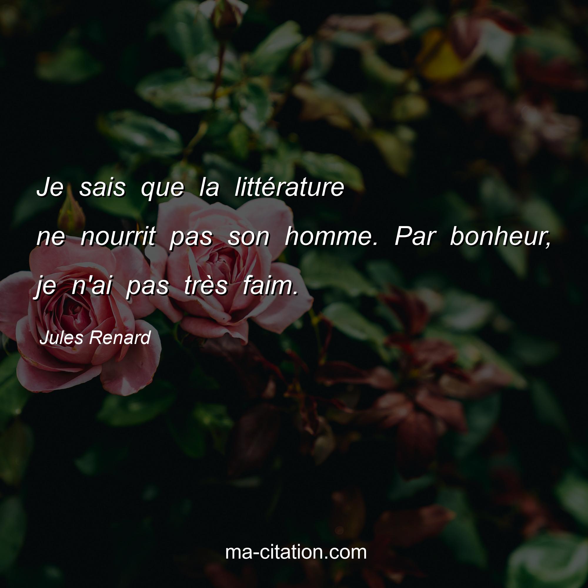 Citation sur la vie de Jules Renard :Je sais que la littérature ne nourrit pas son homme. Par bonheur, je n'ai pas très faim.
