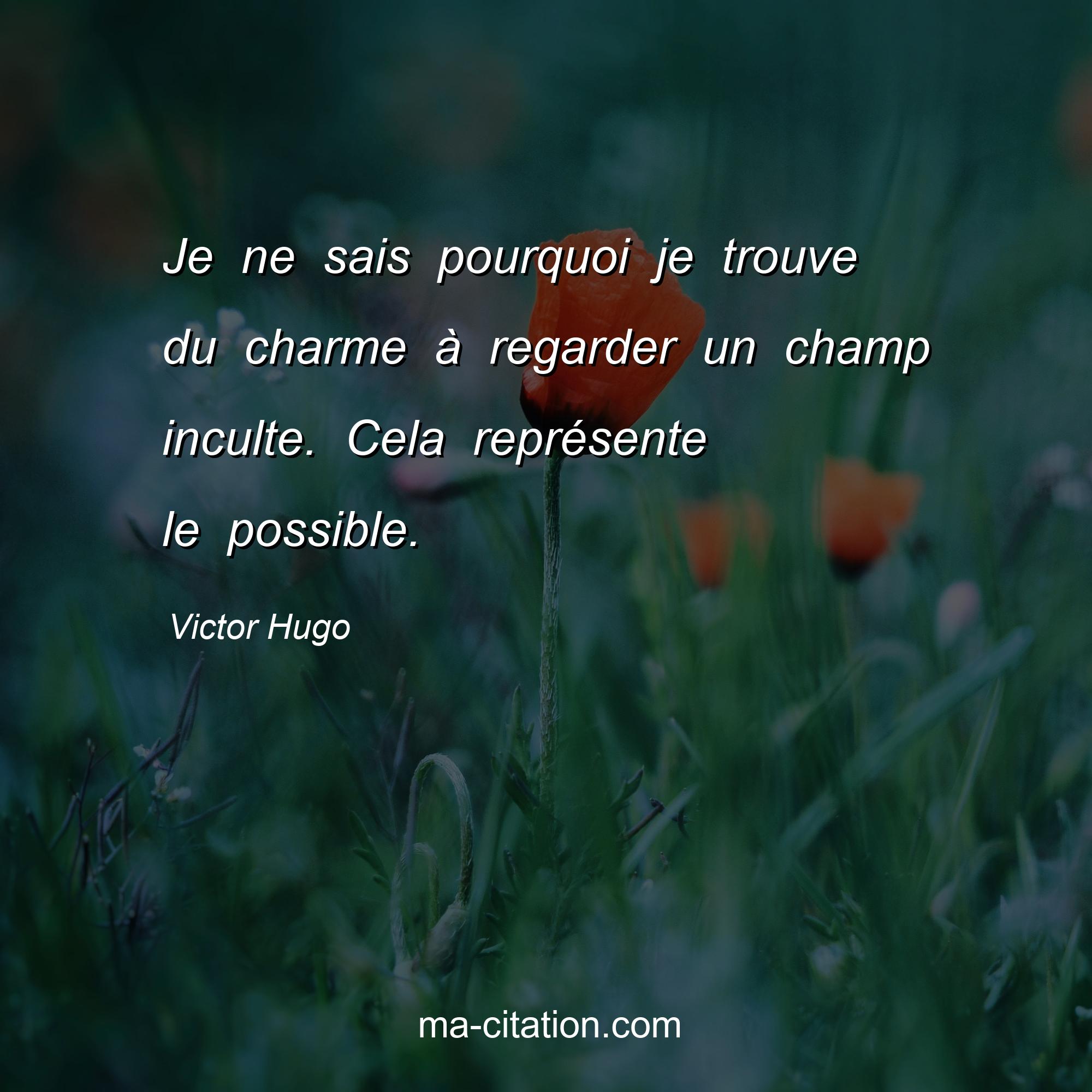 Citation sur la vie de Victor Hugo :Je ne sais pourquoi je trouve du charme à regarder un champ inculte. Cela représente le possible.