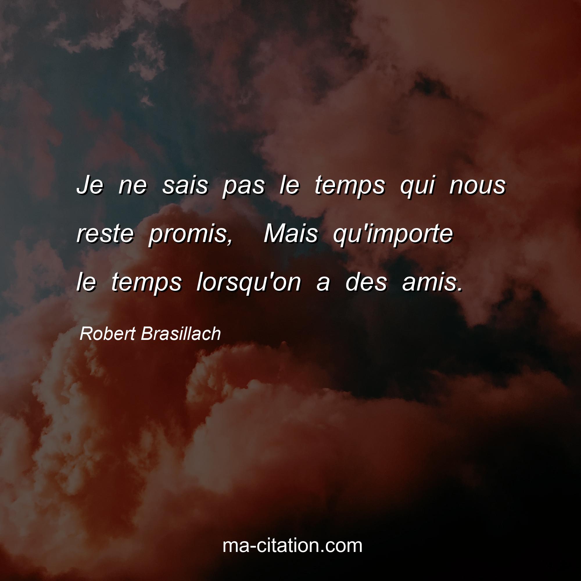 Citation sur la vie de Robert Brasillach :Je ne sais pas le temps qui nous reste promis, Mais qu'importe le temps lorsqu'on a des amis.