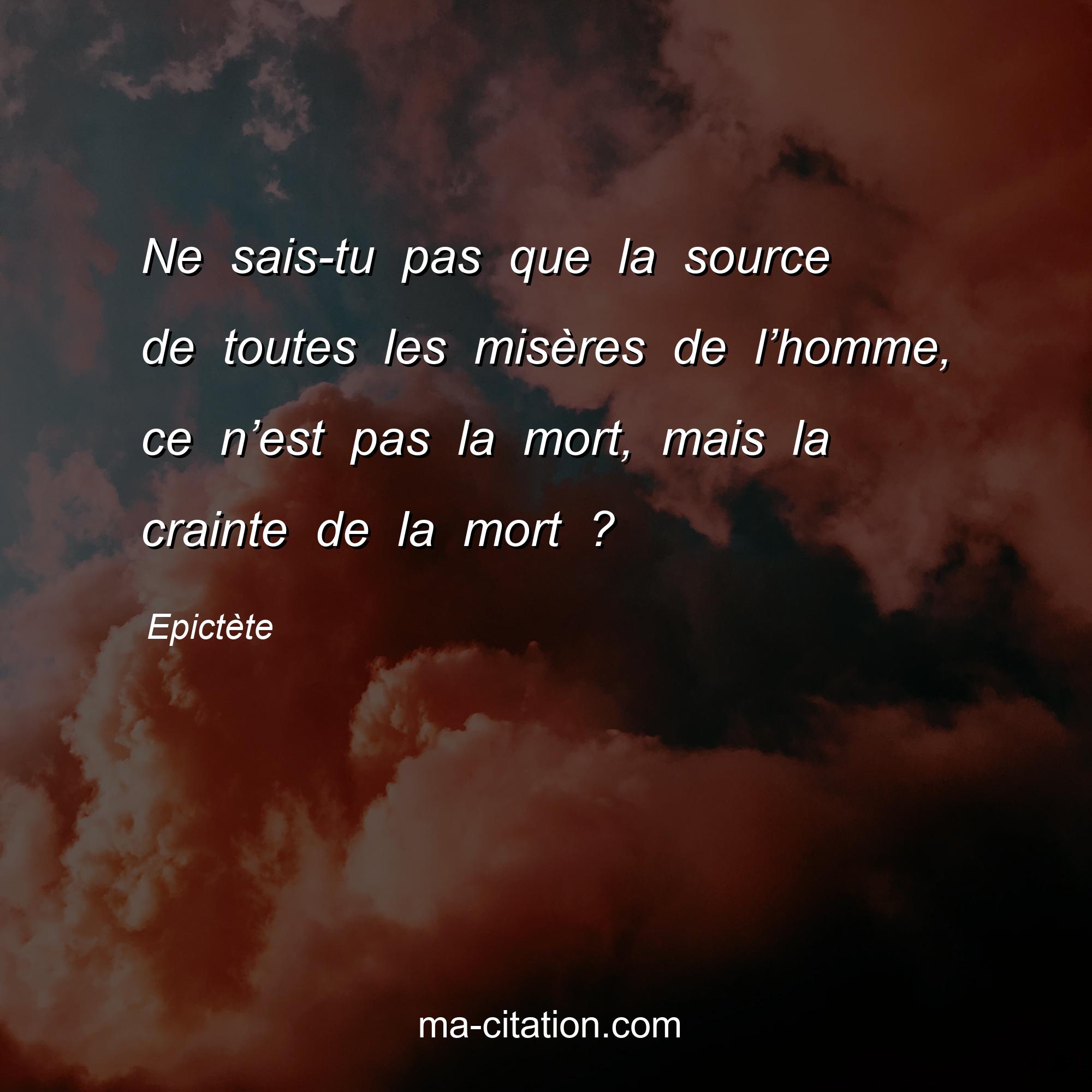 Citation sur la vie d'Epictète :Ne sais-tu pas que la source de toutes les misères de l’homme, ce n’est pas la mort, mais la crainte de la mort ?