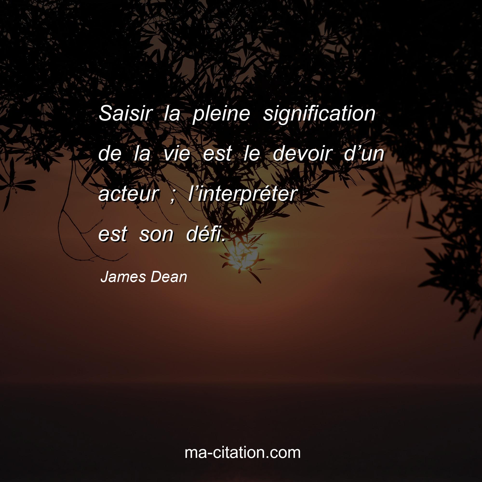 James Dean est l'auteur de la citation sur la vie "Saisir la pleine signification de la vie est le devoir d’un acteur ; l’interpréter est son défi.".