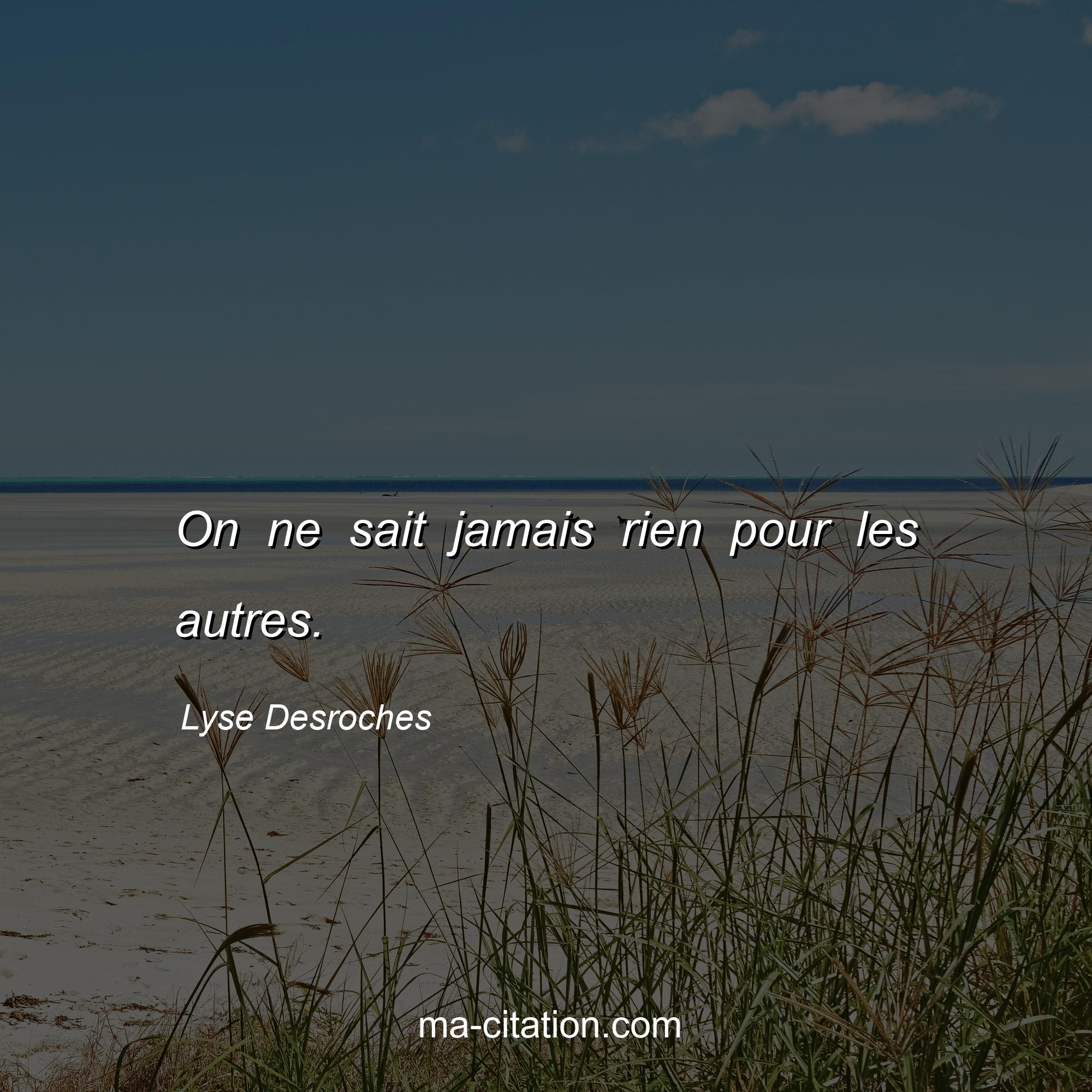 Lyse Desroches est l'auteur de la citation sur la vie "On ne sait jamais rien pour les autres.".