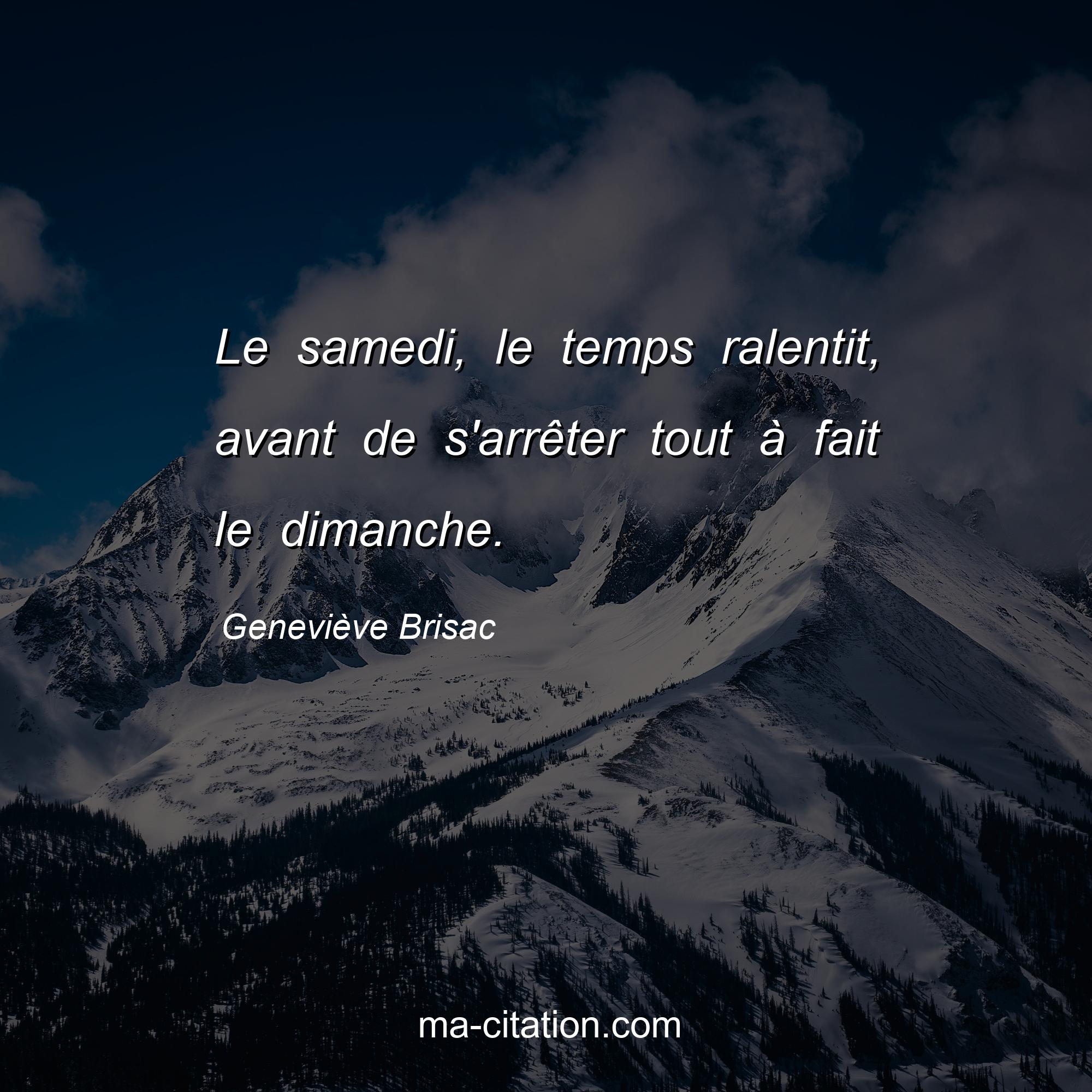Citation sur la vie de Geneviève Brisac :Le samedi, le temps ralentit, avant de s'arrêter tout à fait le dimanche.