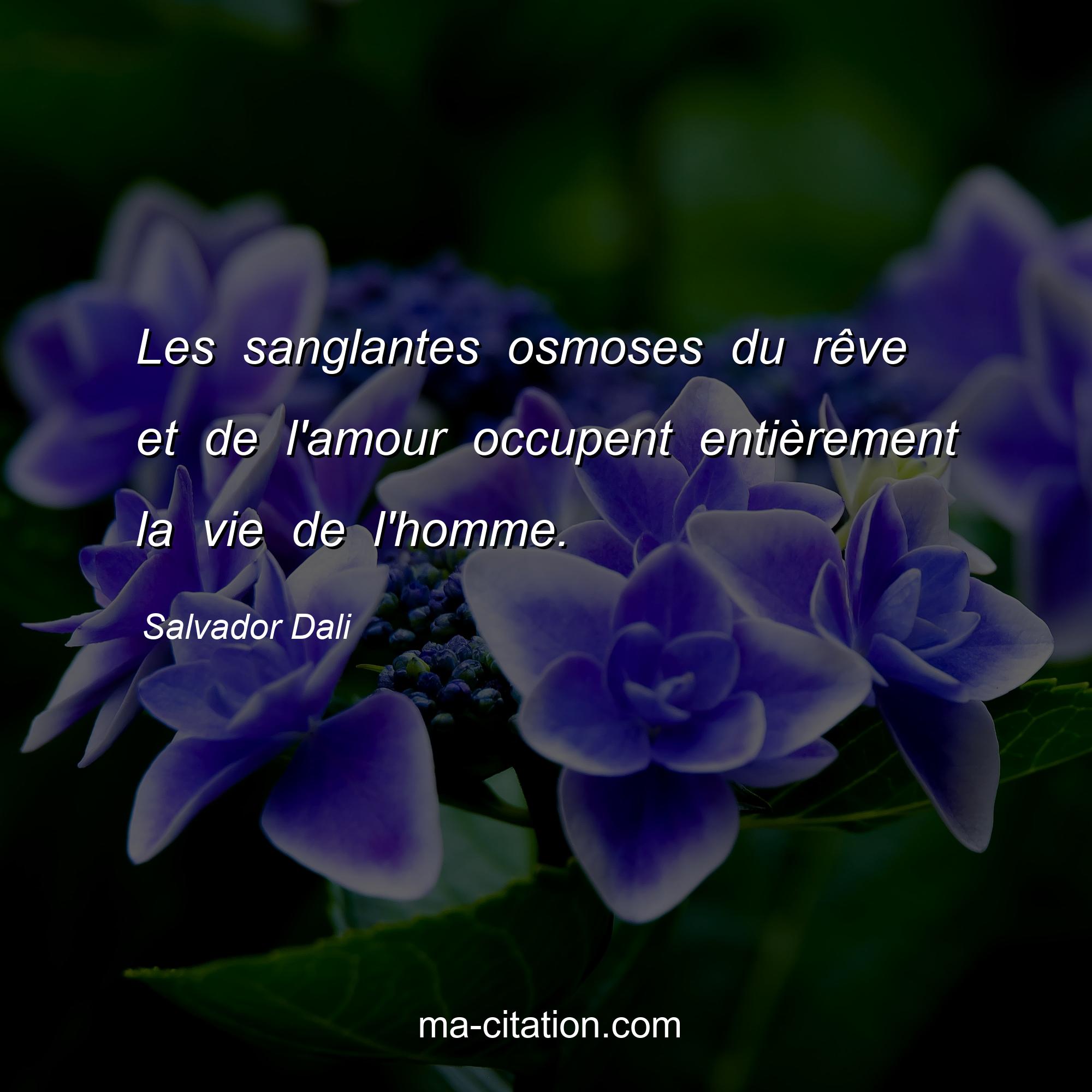 Citation sur la vie de Salvador Dali :Les sanglantes osmoses du rêve et de l'amour occupent entièrement la vie de l'homme.