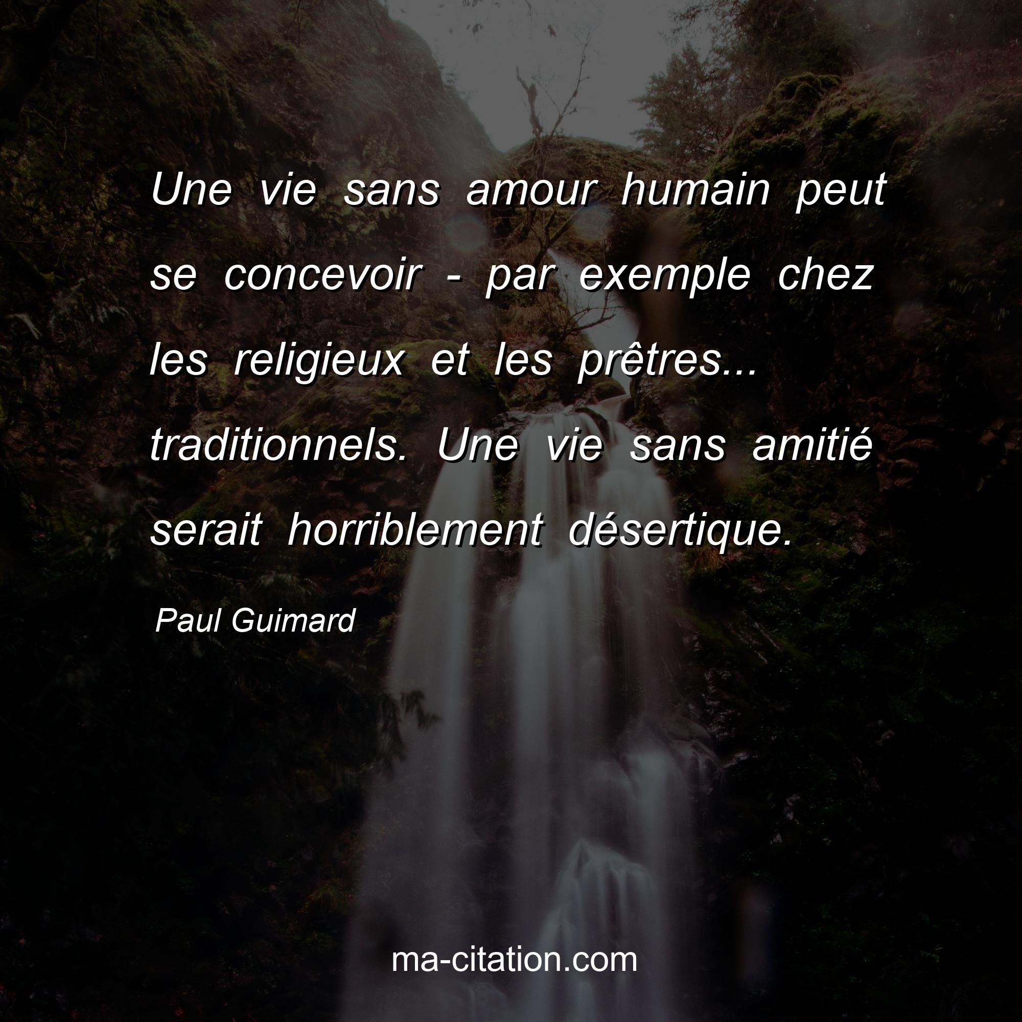 Citation sur la vie de Paul Guimard :Une vie sans amour humain peut se concevoir - par exemple chez les religieux et les prêtres... traditionnels. Une vie sans amitié serait horriblement désertique.