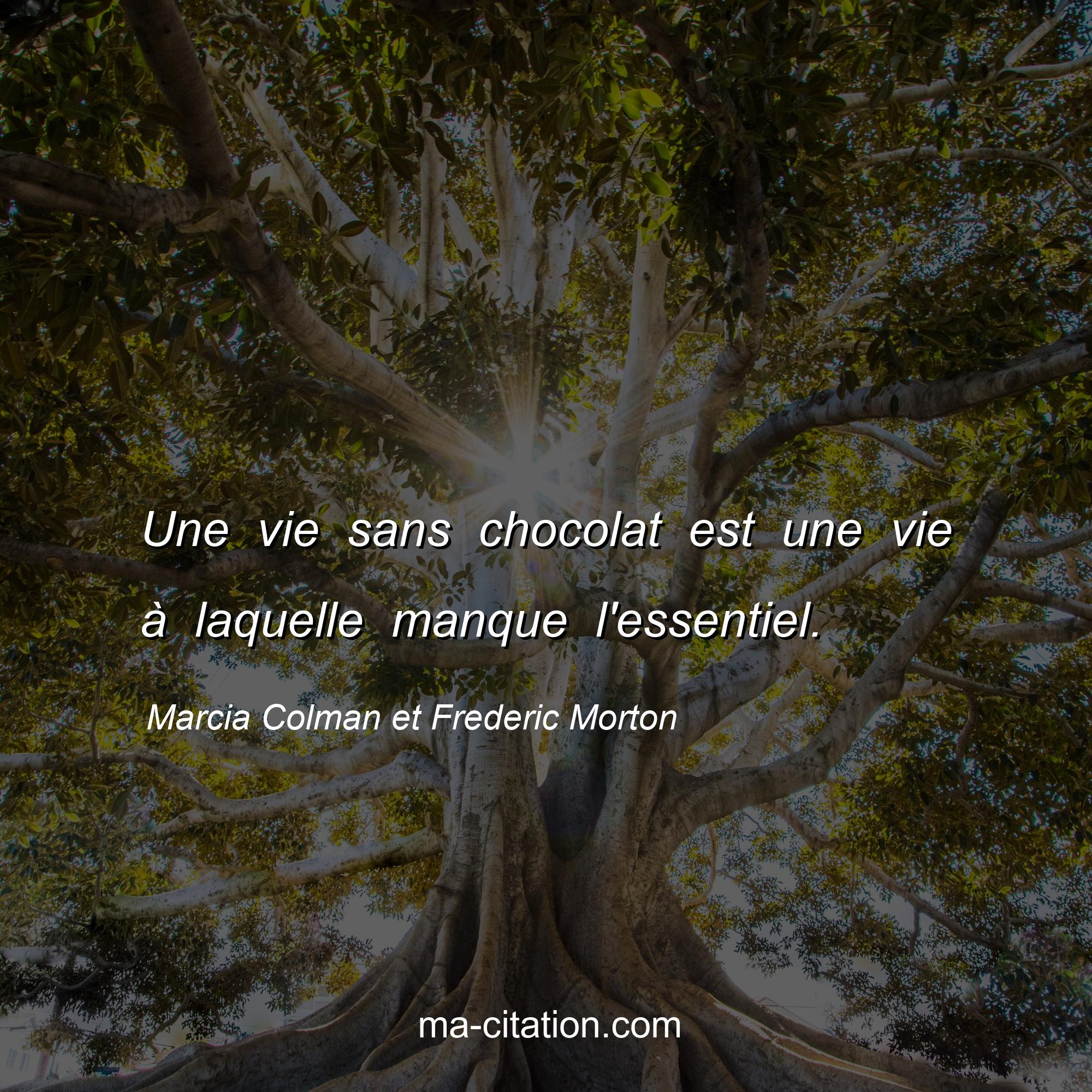 Citation sur la vie de Marcia Colman et Frederic Morton :Une vie sans chocolat est une vie à laquelle manque l'essentiel.