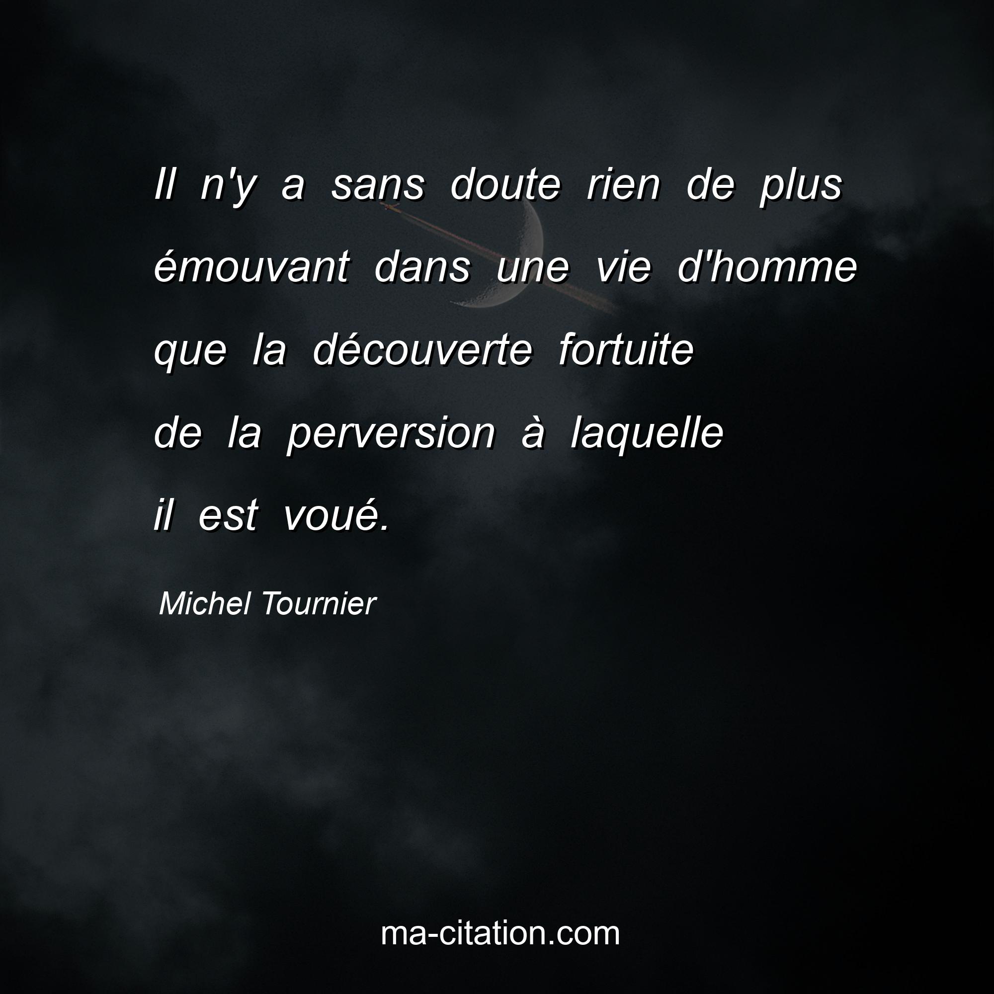 Citation sur la vie de Michel Tournier :Il n'y a sans doute rien de plus émouvant dans une vie d'homme que la découverte fortuite de la perversion à laquelle il est voué.