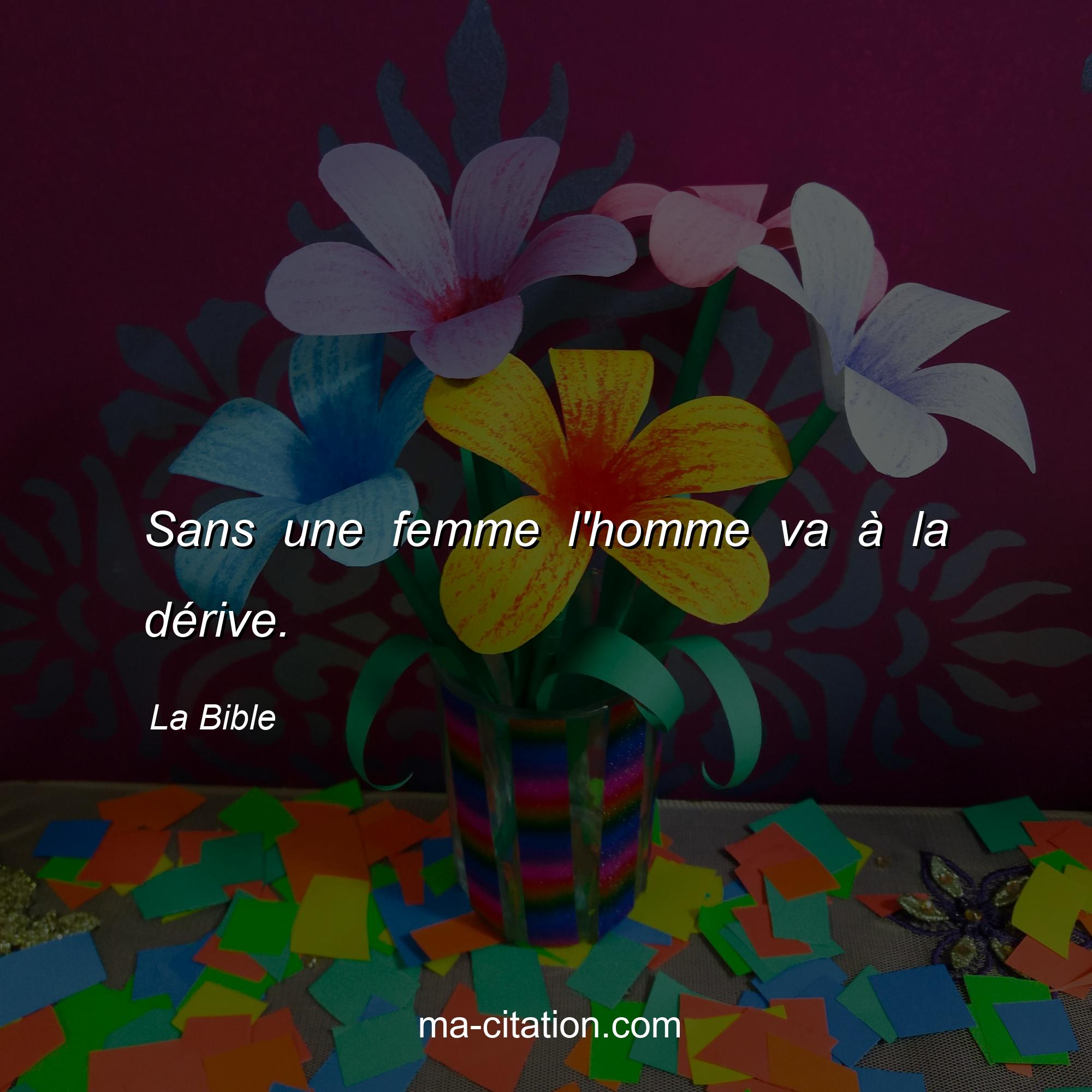 Citation sur la vie de La Bible :Sans une femme l'homme va à la dérive.