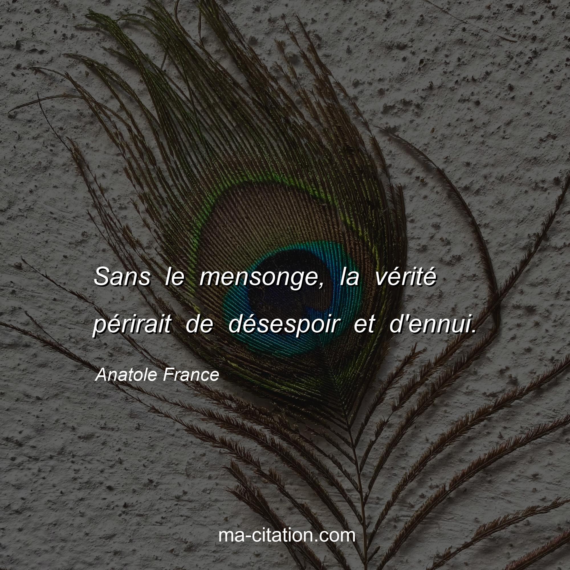 Citation sur la vie d'Anatole France :Sans le mensonge, la vérité périrait de désespoir et d'ennui.