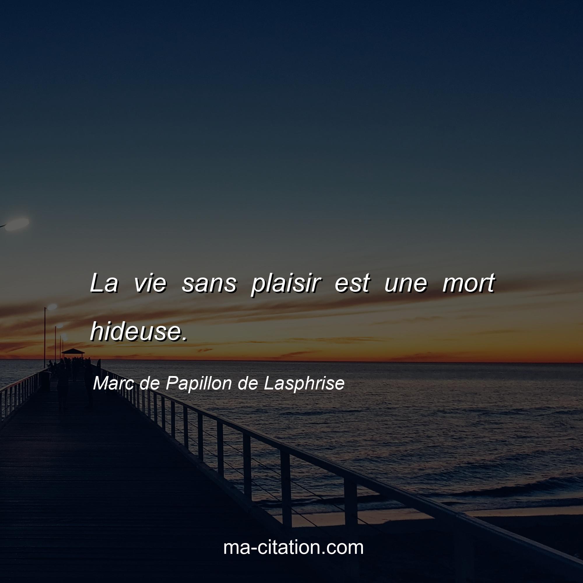 Marc de Papillon de Lasphrise est l'auteur de la citation sur la vie "La vie sans plaisir est une mort hideuse.".