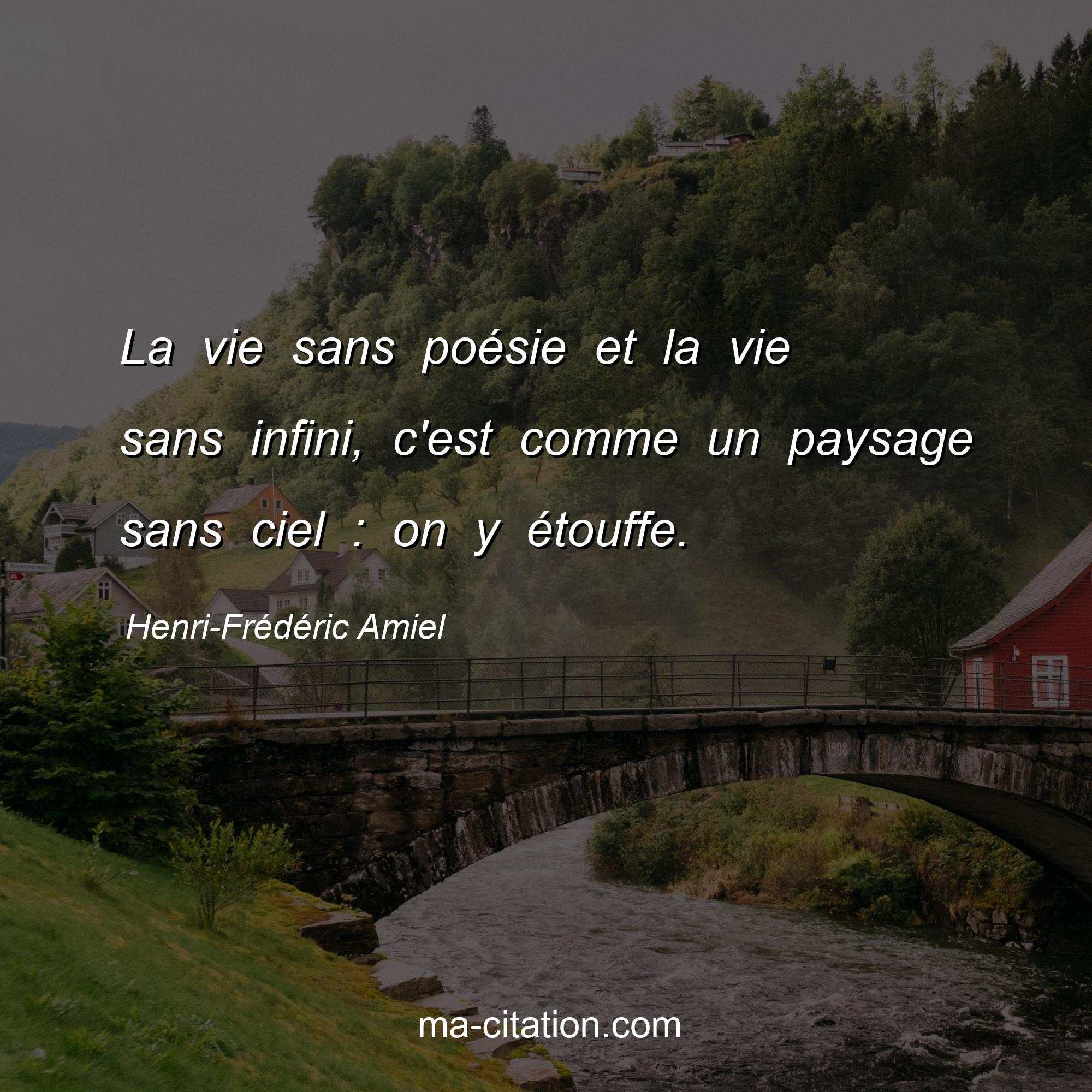 Citation sur la vie de Henri-Frédéric Amiel :La vie sans poésie et la vie sans infini, c'est comme un paysage sans ciel : on y étouffe.