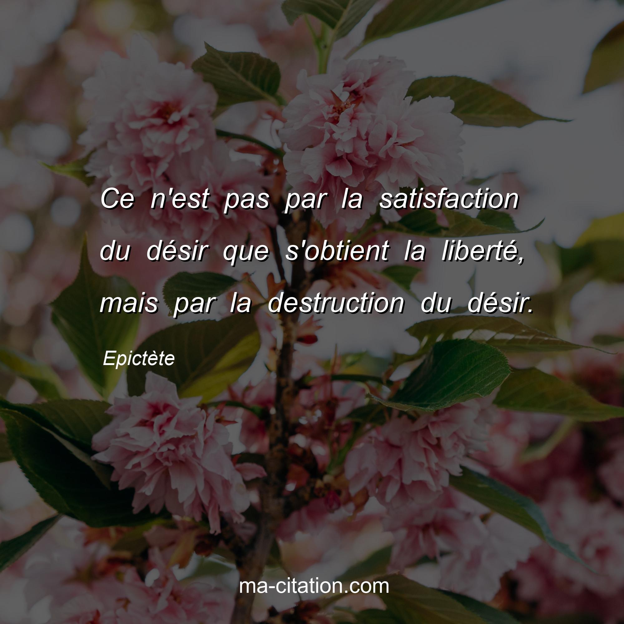 Citation sur la vie d'Epictète :Ce n'est pas par la satisfaction du désir que s'obtient la liberté, mais par la destruction du désir.
