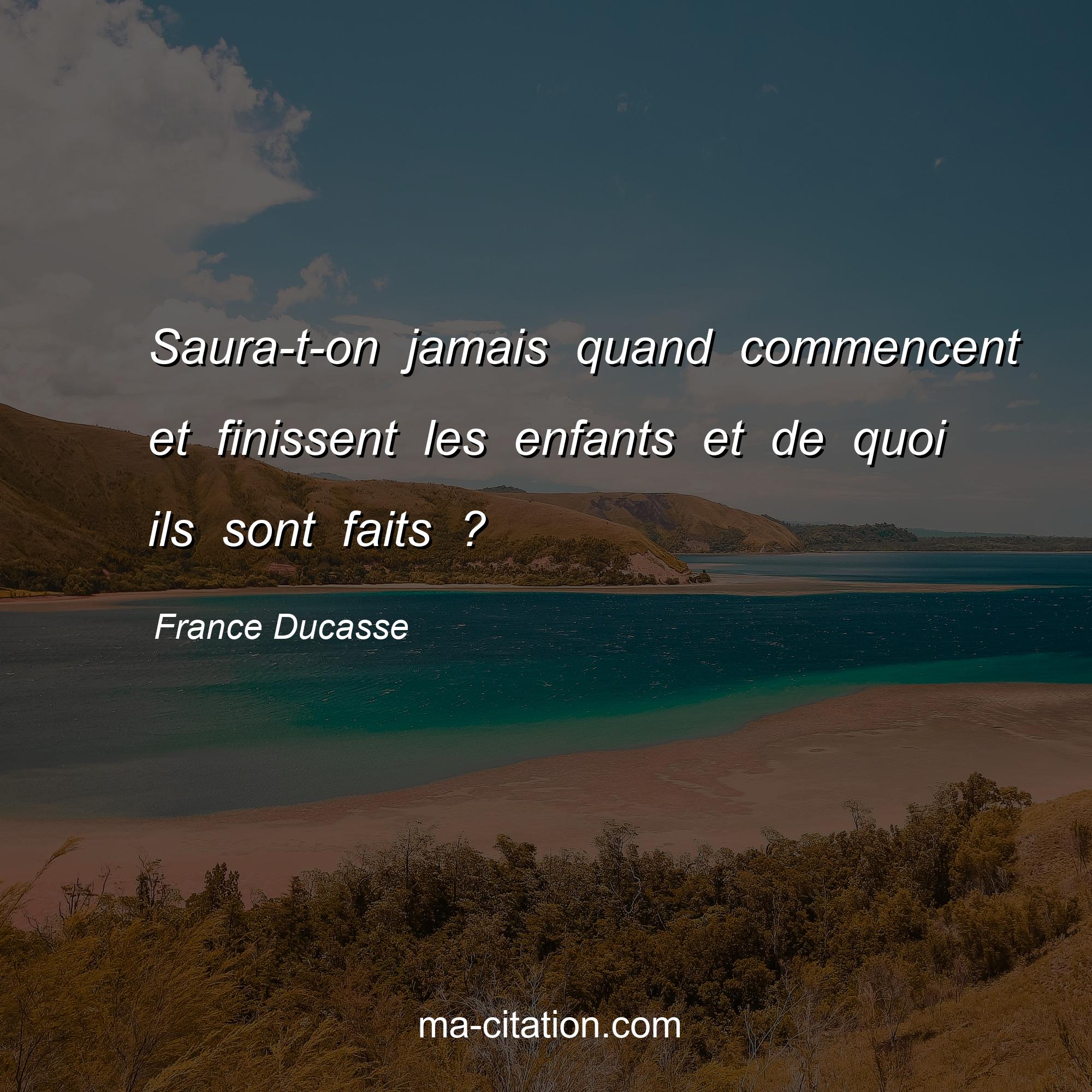 Citation sur la vie de France Ducasse :Saura-t-on jamais quand commencent et finissent les enfants et de quoi ils sont faits ?