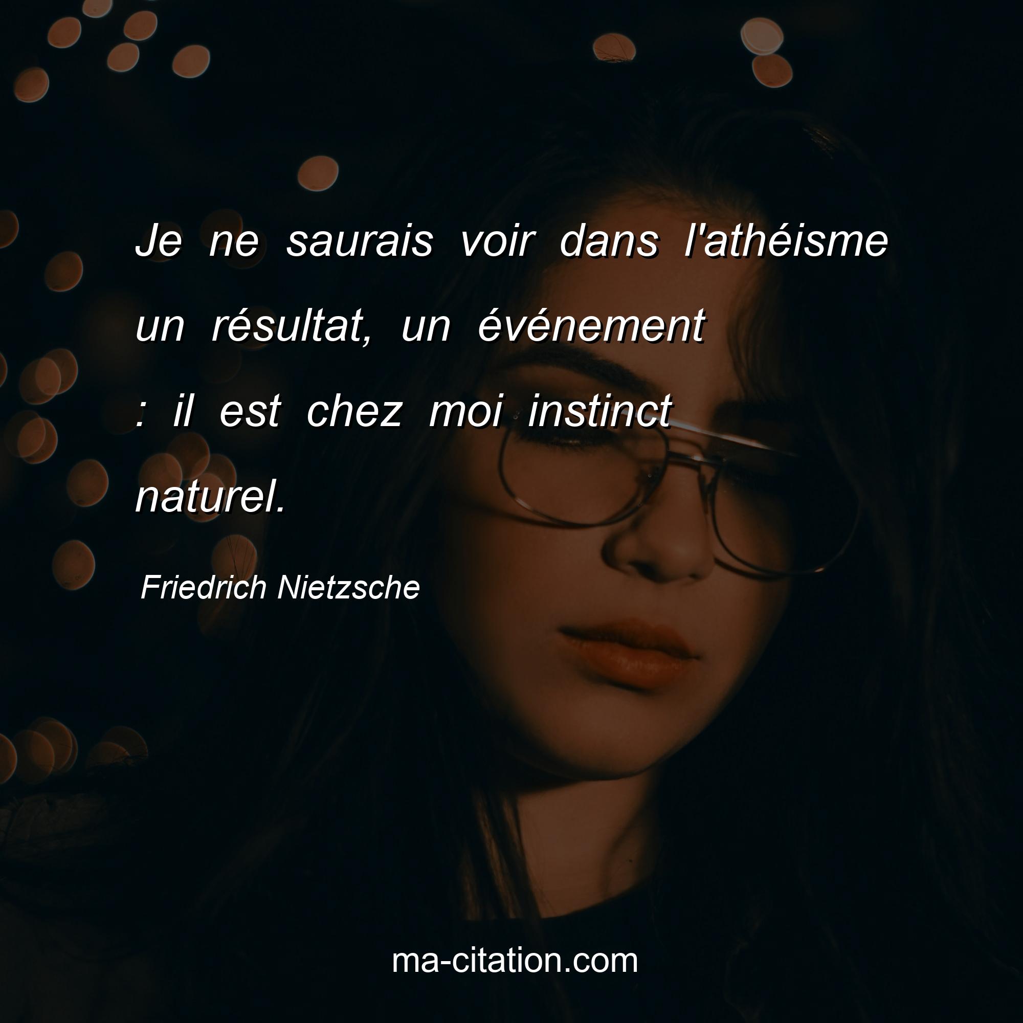 Citation sur la vie de Friedrich Nietzsche :Je ne saurais voir dans l'athéisme un résultat, un événement : il est chez moi instinct naturel.