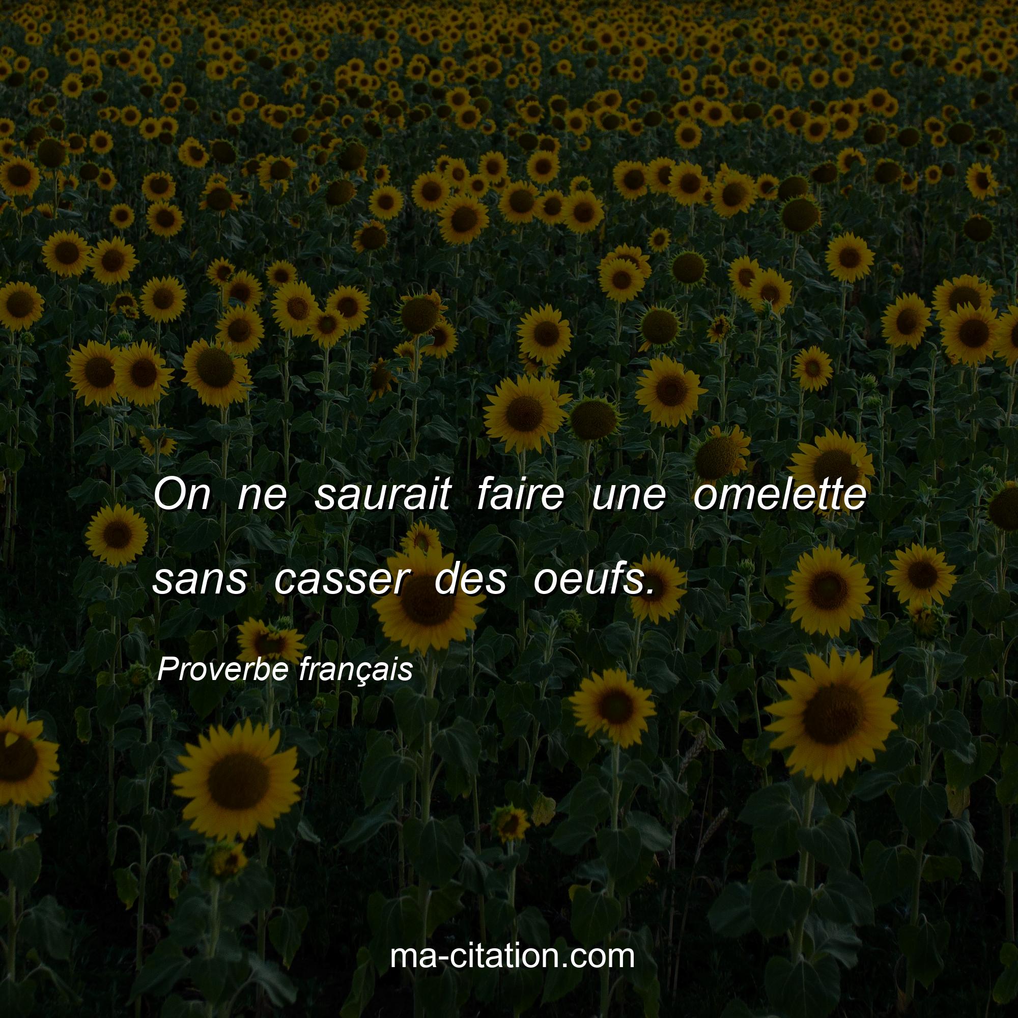 Proverbe français sur la vie :On ne saurait faire une omelette sans casser des oeufs.