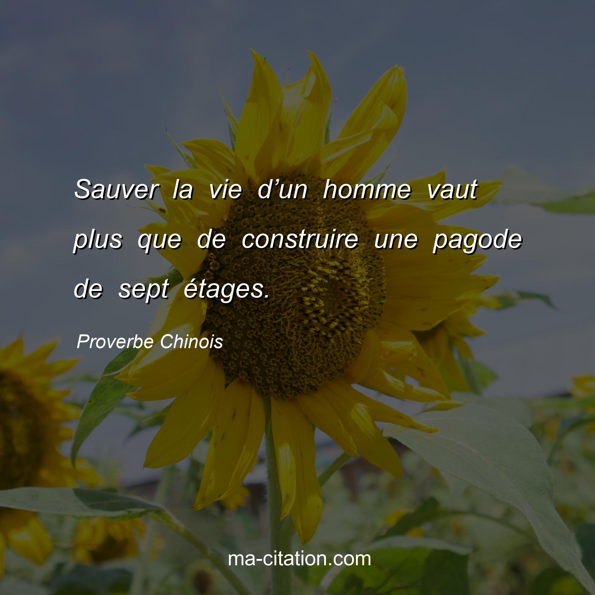 Proverbe Chinois sur la vie :Sauver la vie d’un homme vaut plus que de construire une pagode de sept étages.