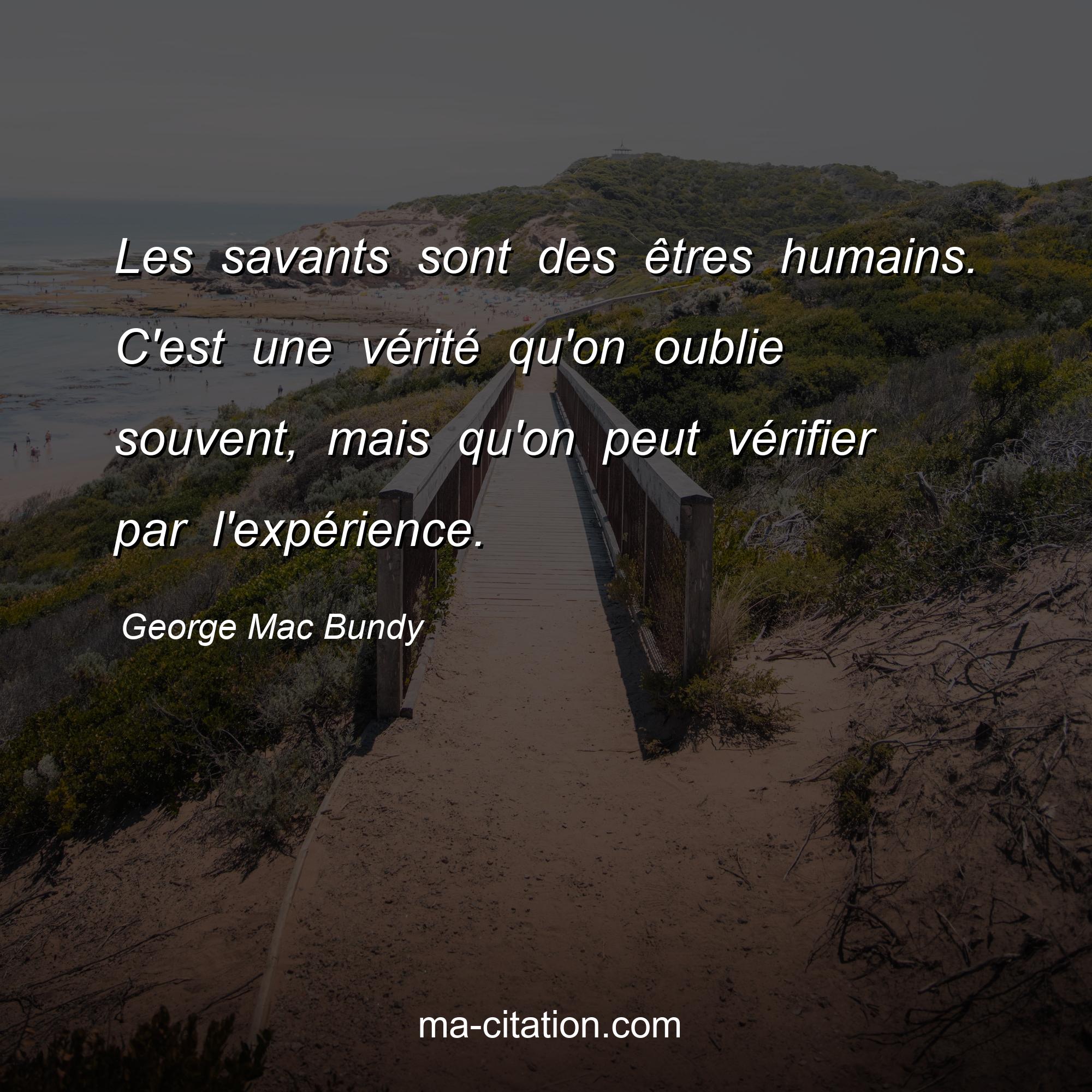 Citation sur la vie de George Mac Bundy :Les savants sont des êtres humains. C'est une vérité qu'on oublie souvent, mais qu'on peut vérifier par l'expérience.