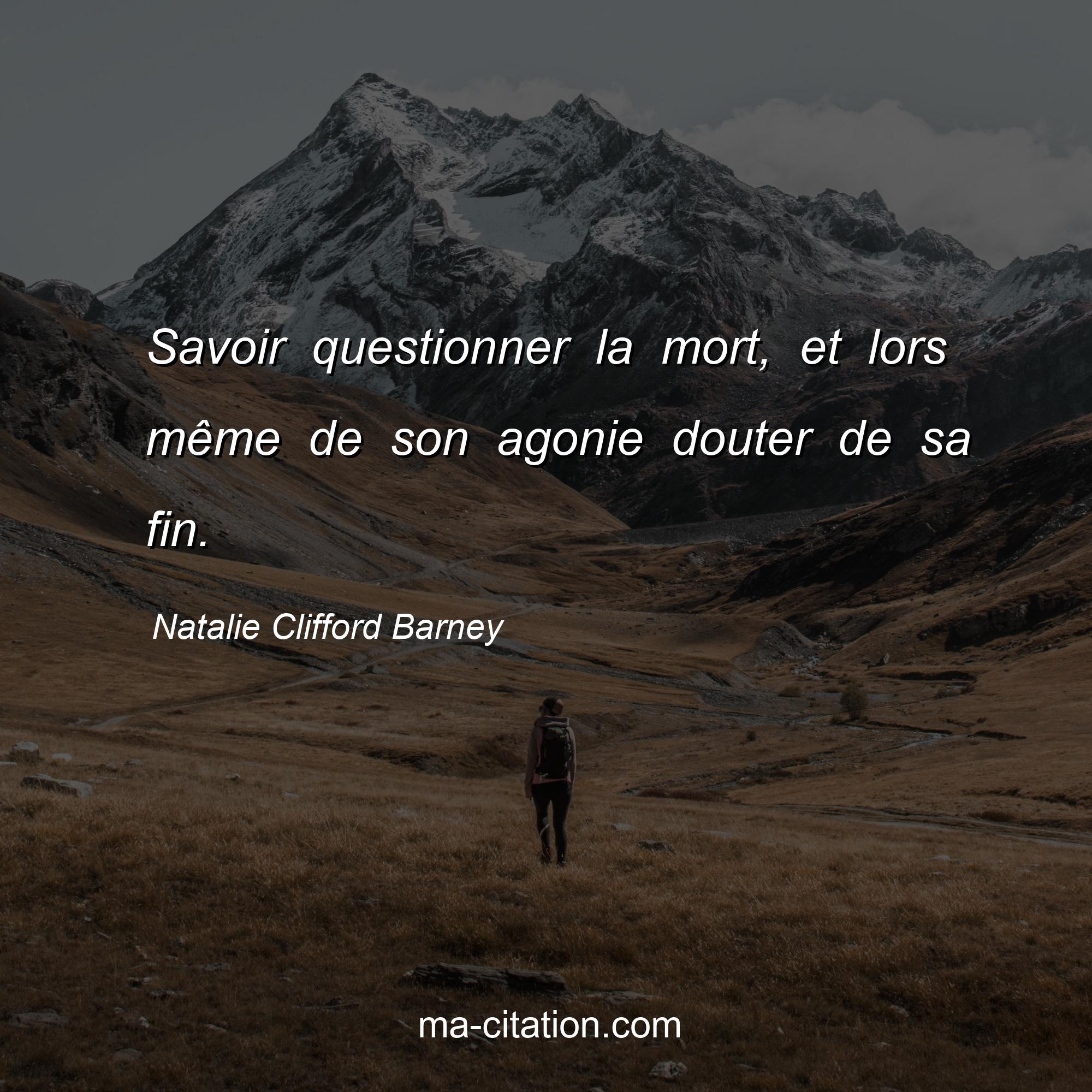 Natalie Clifford Barney est l'auteur de la citation sur la vie "Savoir questionner la mort, et lors même de son agonie douter de sa fin.".